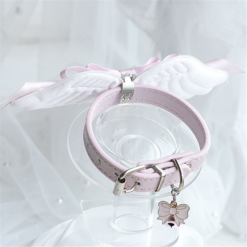 纯欲风唯美手作蝴蝶结颈部装饰天使翅膀可爱女仆配饰铃.铛皮革项