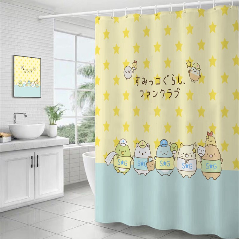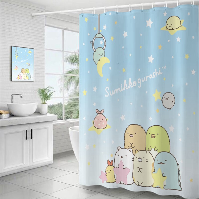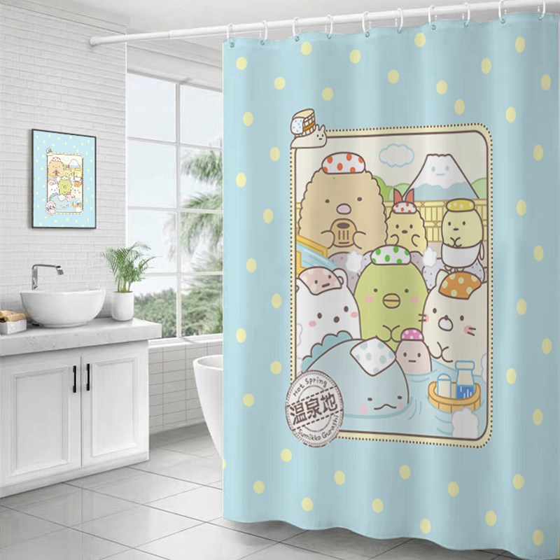 卡通防霉浴帘免打孔套装浴室加厚防水隔断帘卫生间洗澡遮挡布帘子