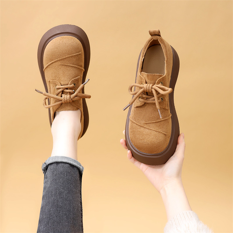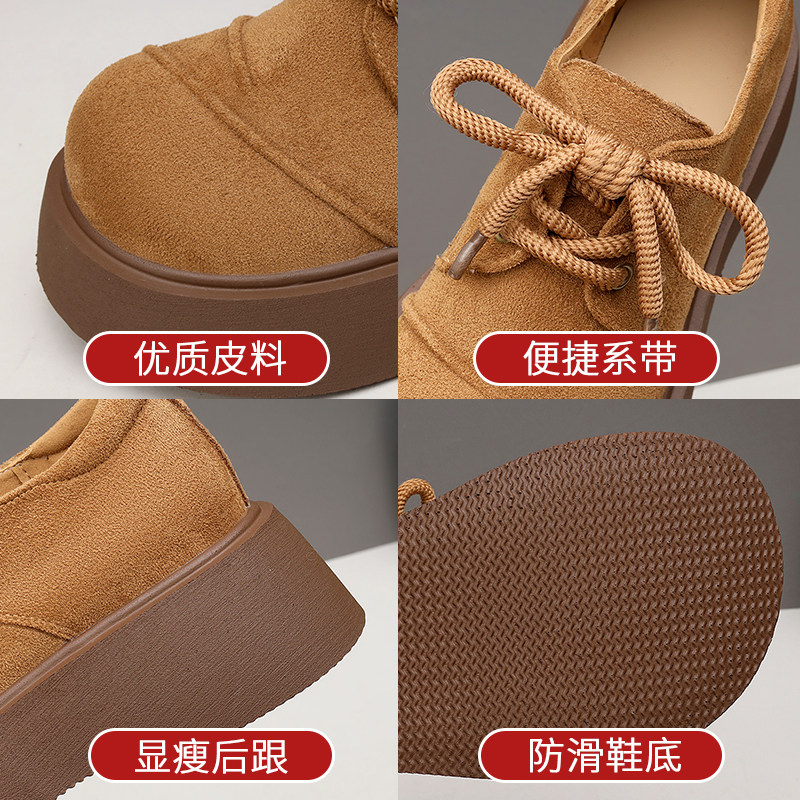 厚底勃肯鞋女款2026春季新款乐福鞋休闲时尚百搭圆头交叉绑带单鞋