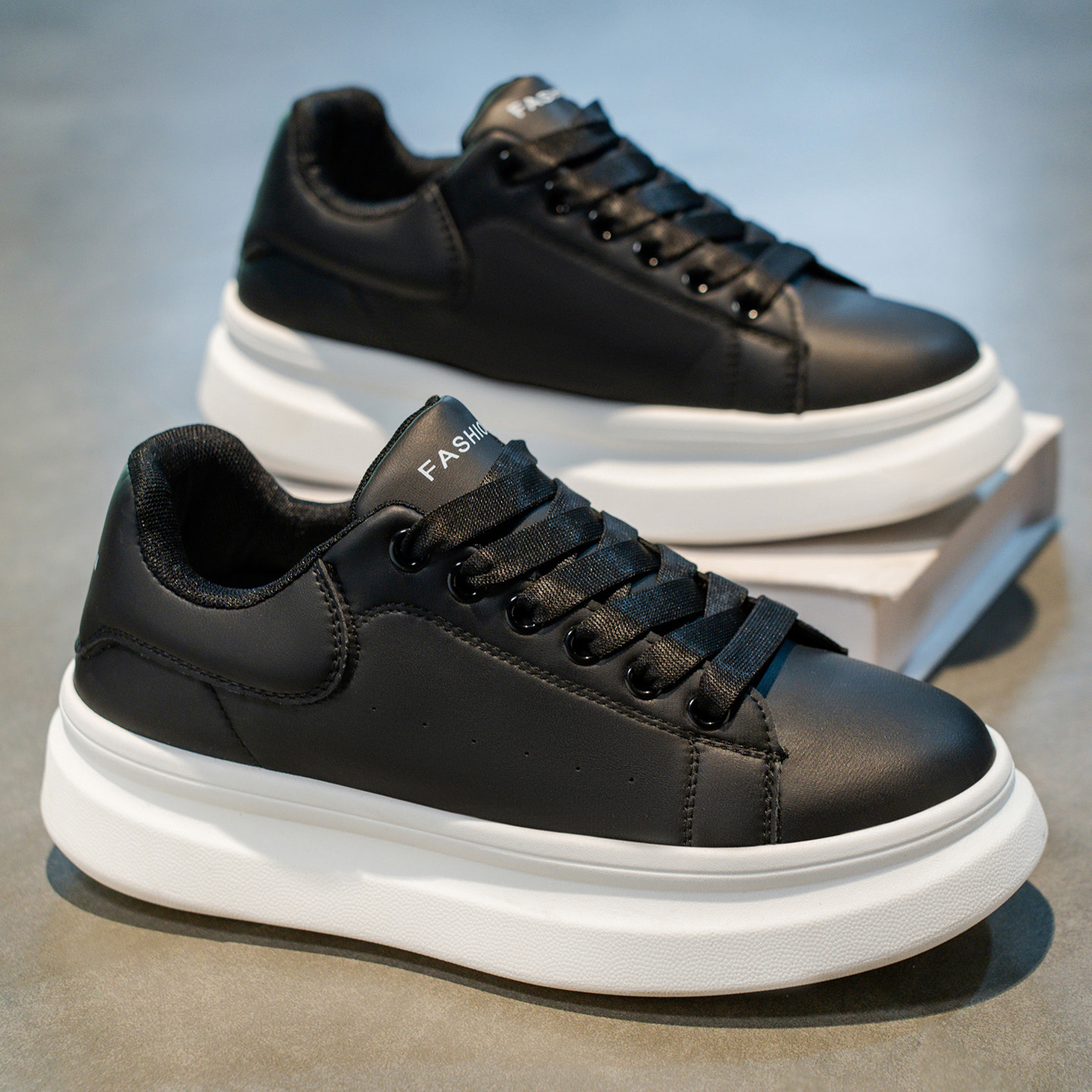 男鞋2025新款秋冬季休闲皮鞋学生运动板鞋皮面厚底增高小白面包鞋