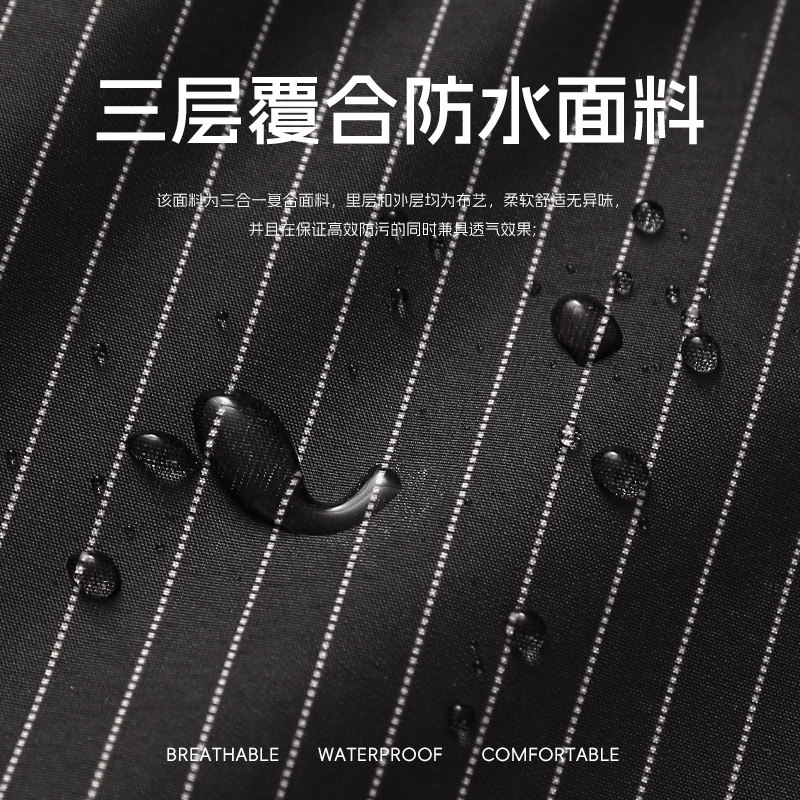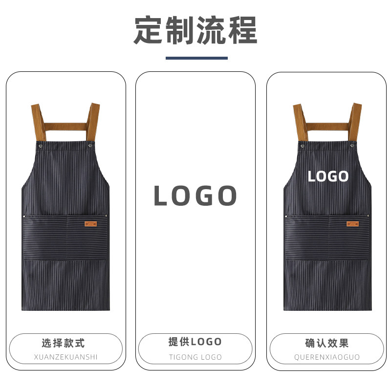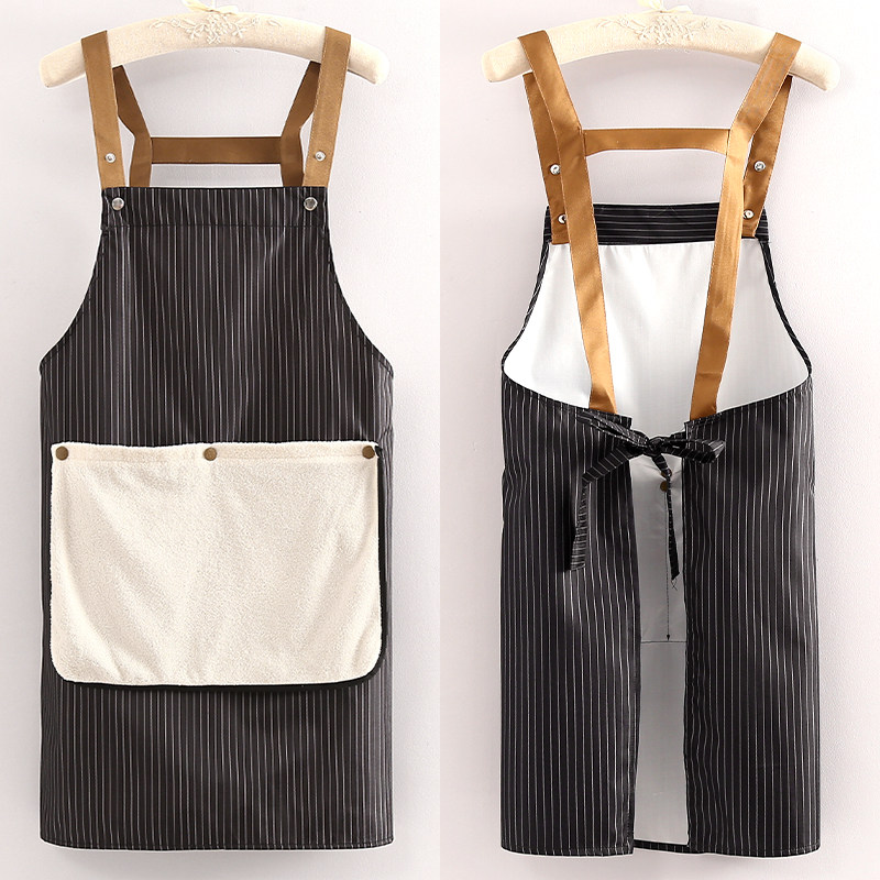 厨房专用经典时尚竖条纹背带围裙防水防油可拆卸式擦手巾男女同款