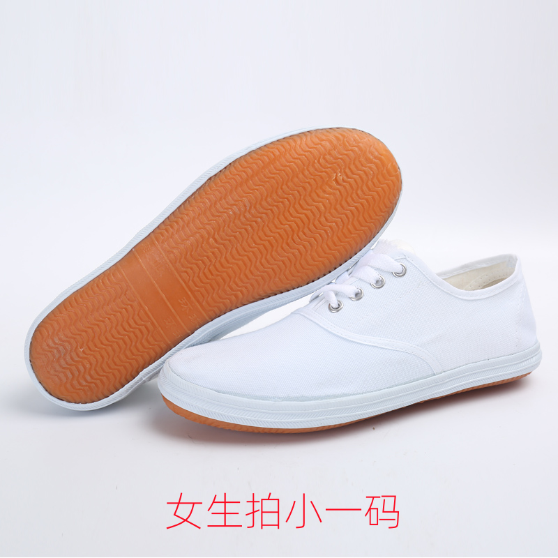 男女童小白鞋中小学生幼儿演出帆布白鞋运动会表演武术体操舞蹈鞋