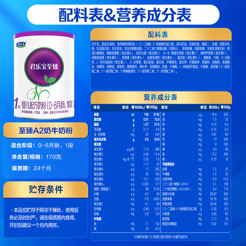 君乐宝至臻A2奶粉170g×1罐