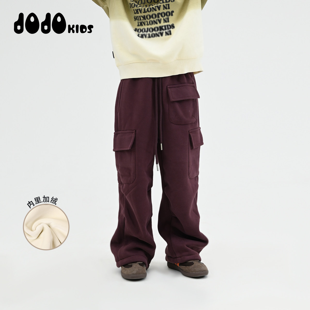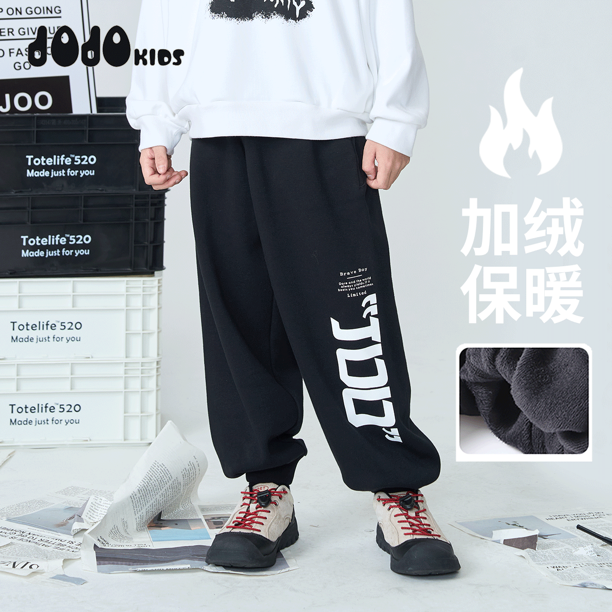 jojo童装冬季新款男女童加绒阔腿裤中大童宽松百搭加厚保暖束脚裤