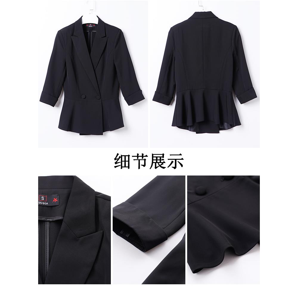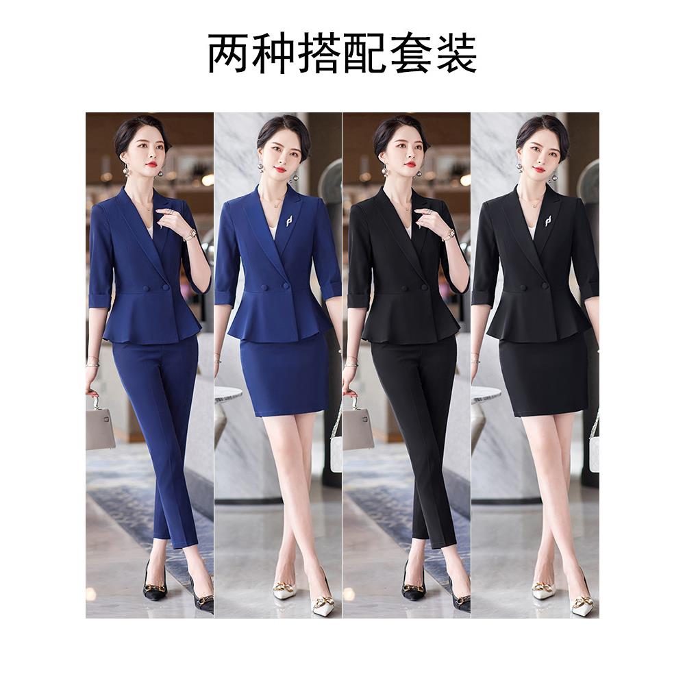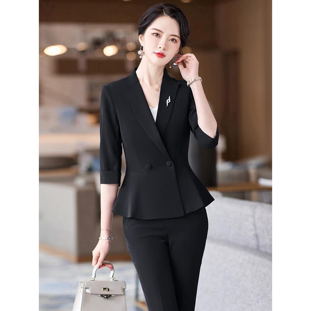 高级感中袖黑色职业西装套装裙女夏高端气质珠宝酒店经理工作服正