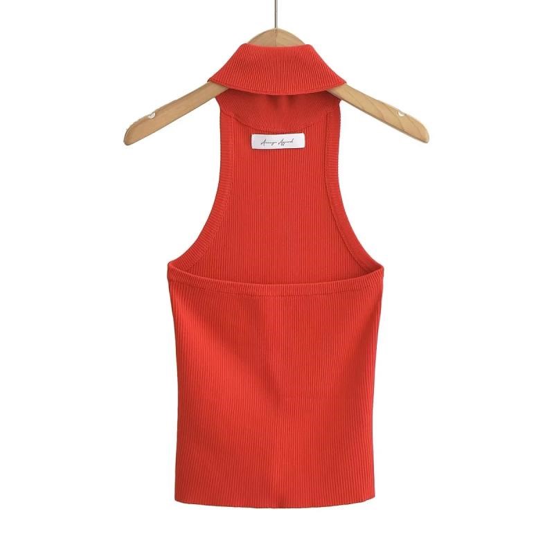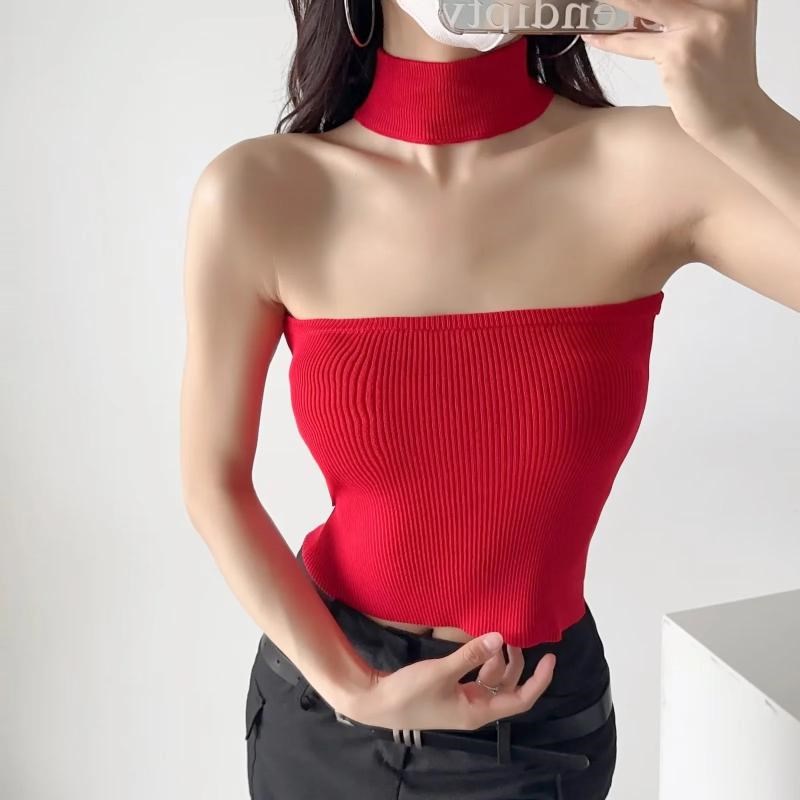前后两穿针织挂脖吊带背心女装夏季新品甜辣性感紧身小众露肩上衣