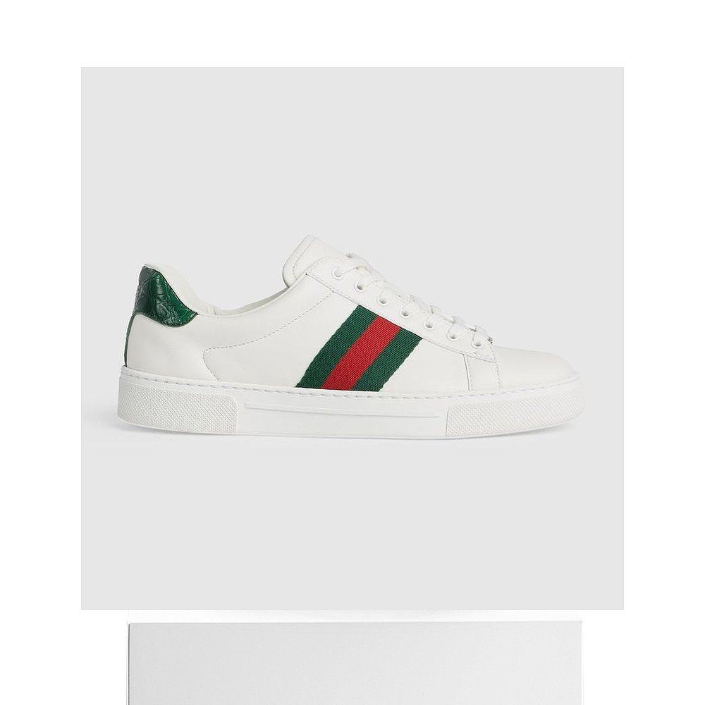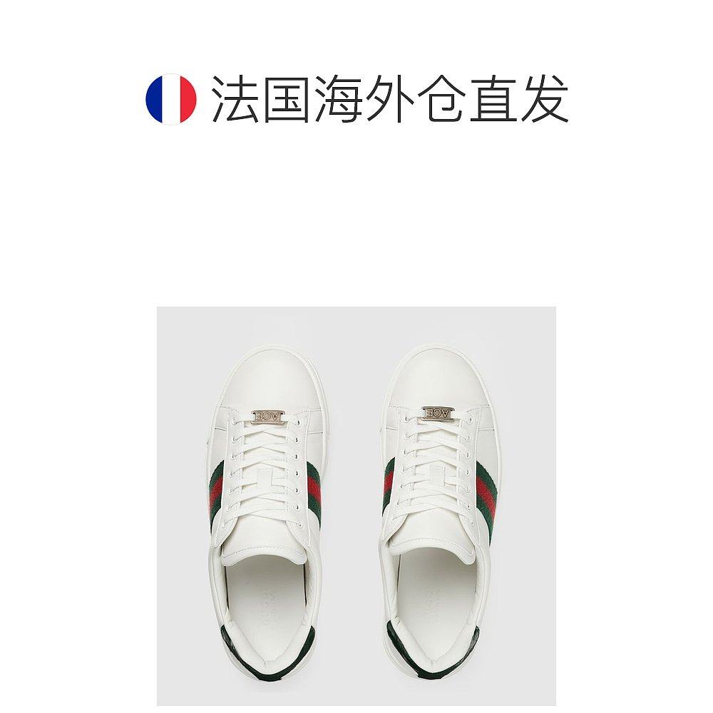 自营欧洲直邮Gucci古驰Ace系列女士白色皮革女式 Web 条纹运动鞋
