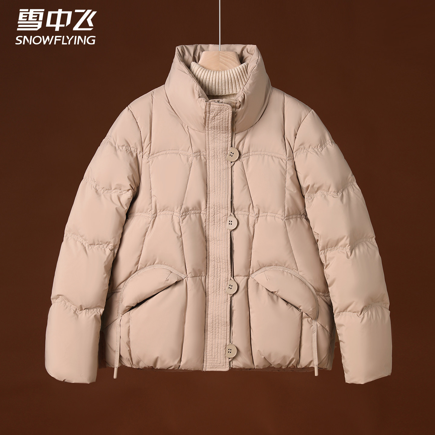 雪中飞妈妈羽绒服短款冬季新款轻薄立领中年女士冬装中老年人外套