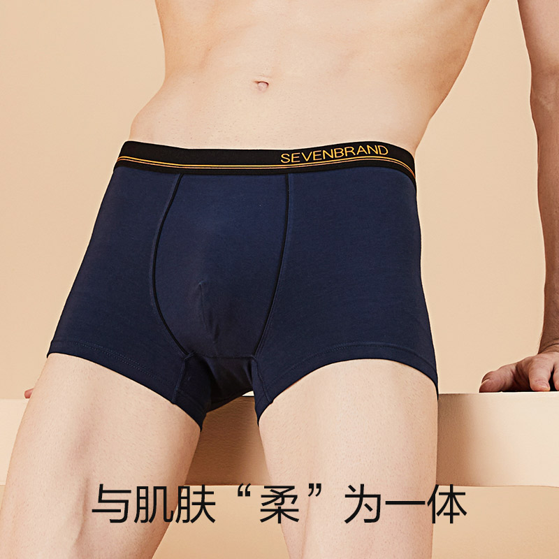 柒牌男士平角内裤夏季薄款四角短裤头透气抗菌男生撞色裤衩三条装