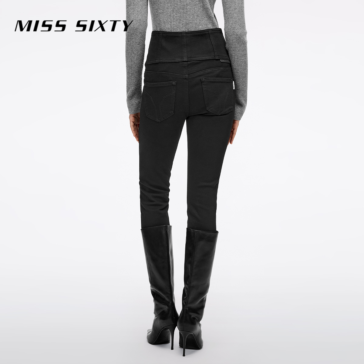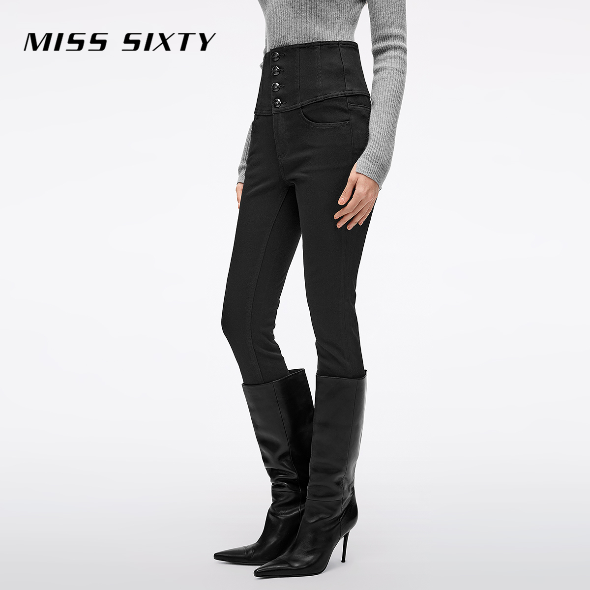 MissSixty四扣超高腰黑色牛仔裤