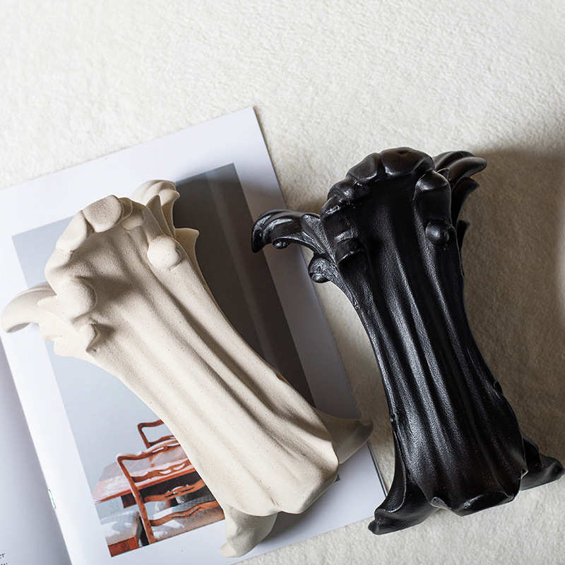 摆件家居装饰风插色素酒店水培干花黑白高级烧感陶瓷花瓶欧式