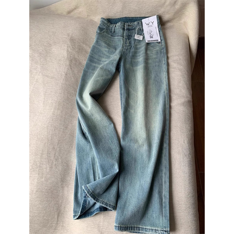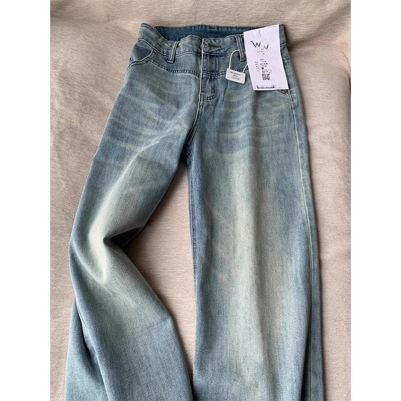 美式浅色阔腿牛仔裤男春季新款ins潮牌设计感水洗宽松直筒休闲裤