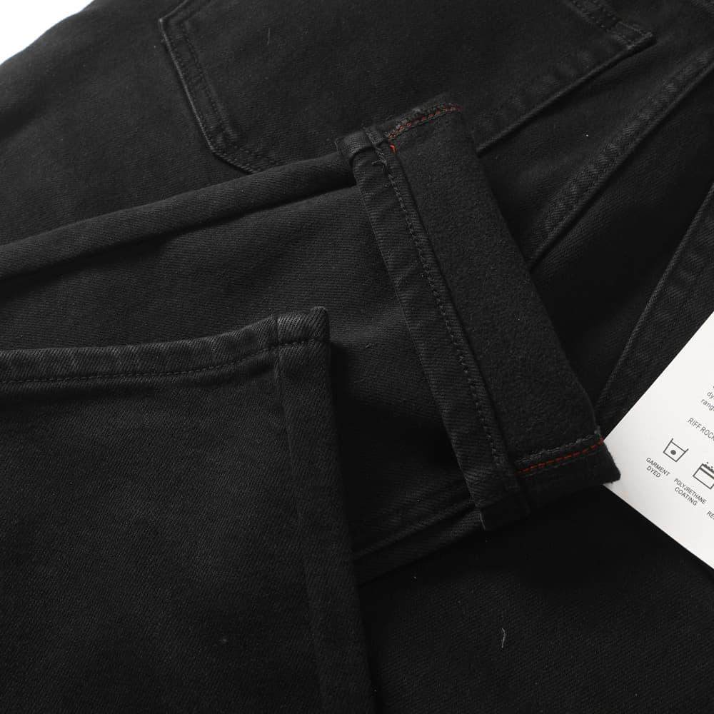 冬季重磅加绒黑色牛仔裤小直筒修身弹力砂洗赤耳男士休闲长裤子潮