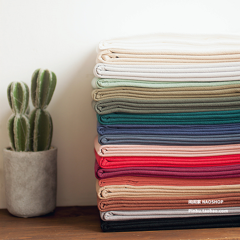闹闹家17色先染布春秋款休闲衬衫汉服全棉素色仿麻砂洗面料水洗棉