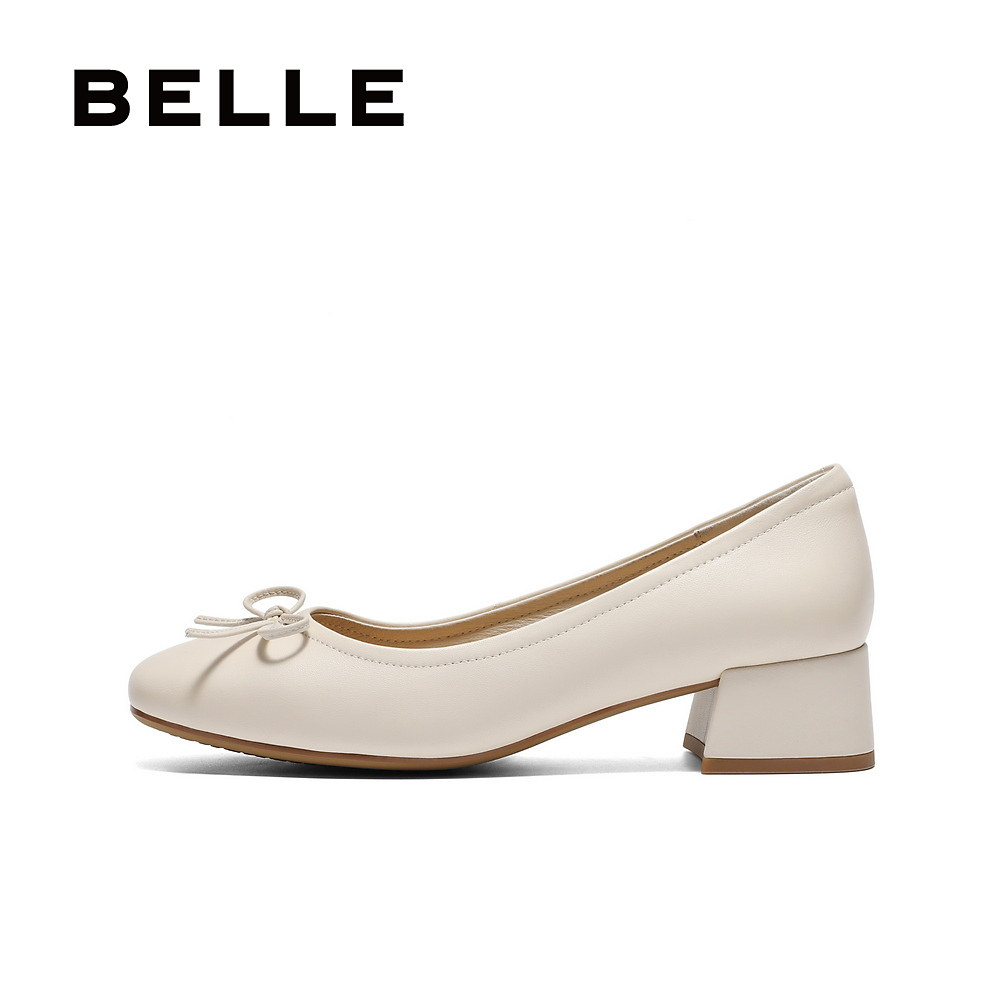 百丽女鞋子粗高跟浅口单鞋女春季新款羊皮妈妈上班鞋B2454AQ5