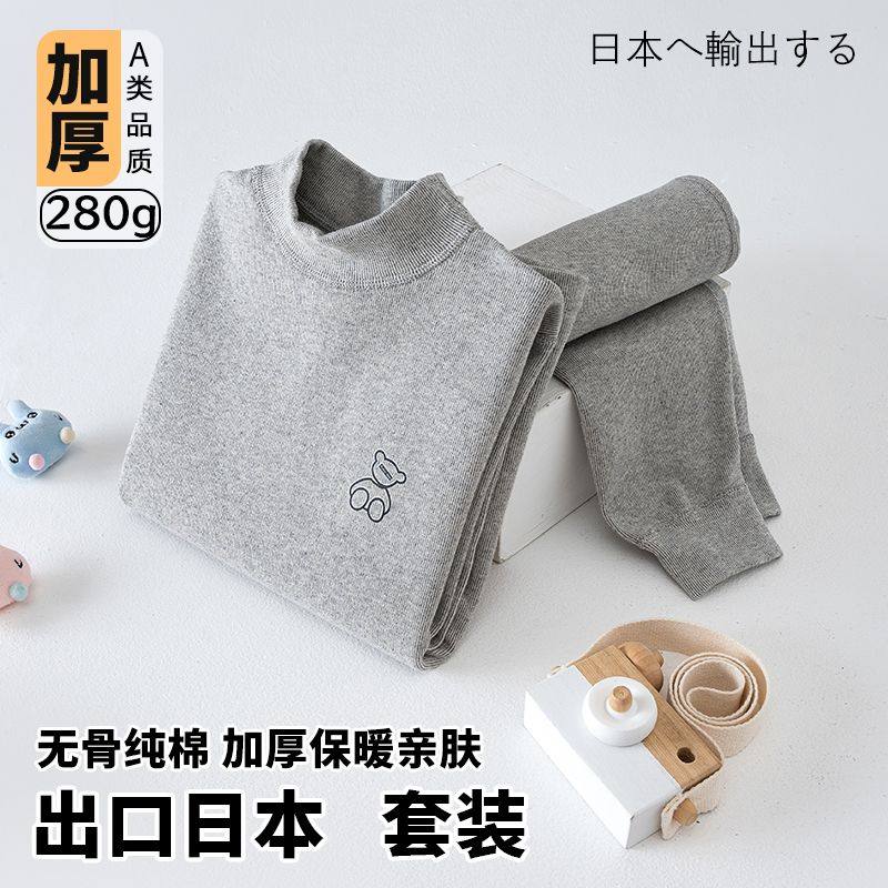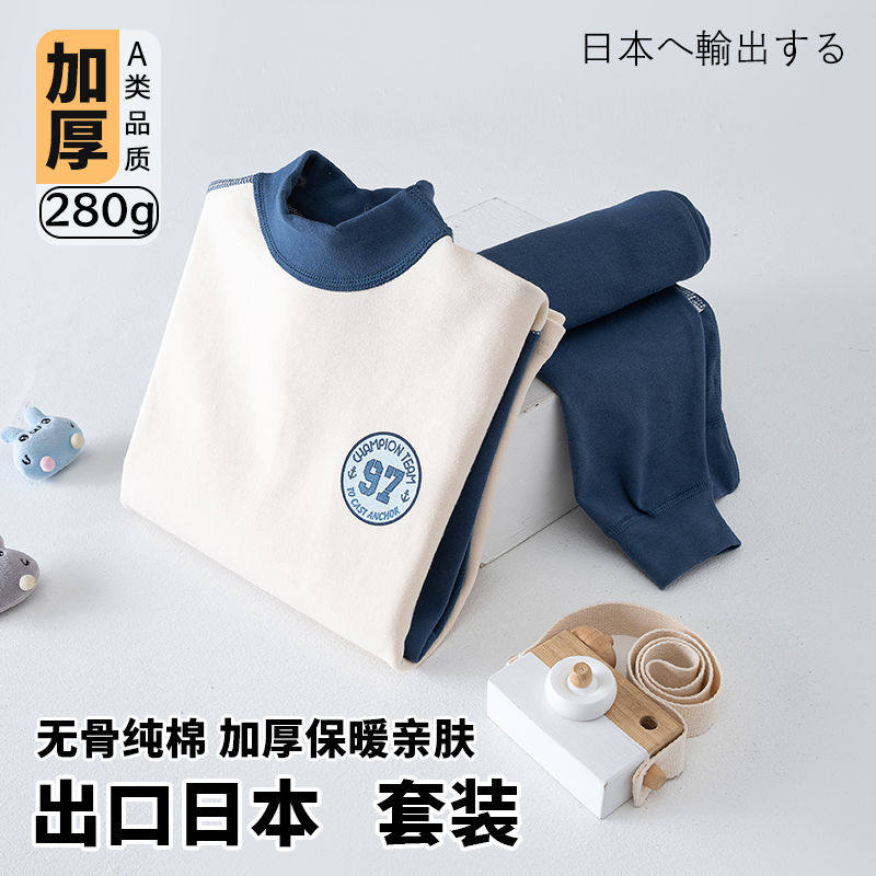 日系A类秋衣秋裤男童女童内衣中领莱卡棉升级保暖高品质加厚套装