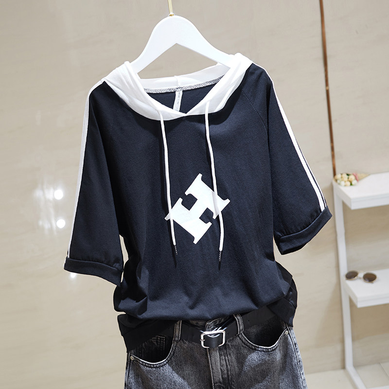 韩版全棉半袖纯色印花潮流体恤女