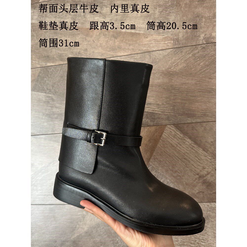欧洲站春手工鞋3cm胎牛皮复古英伦风粗跟平底短靴真皮女士马丁靴