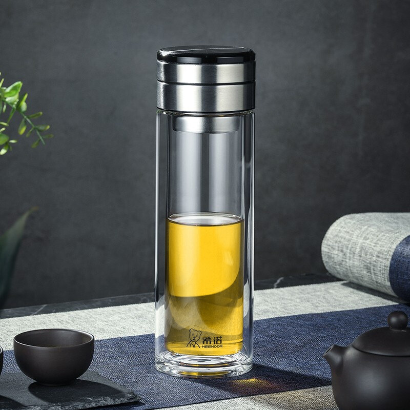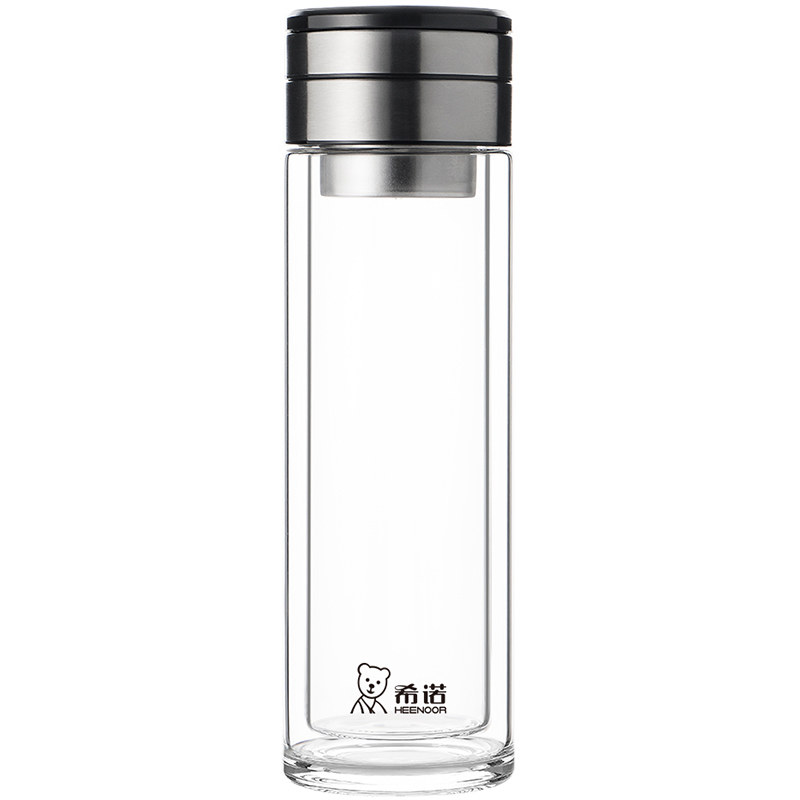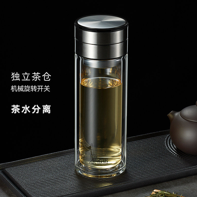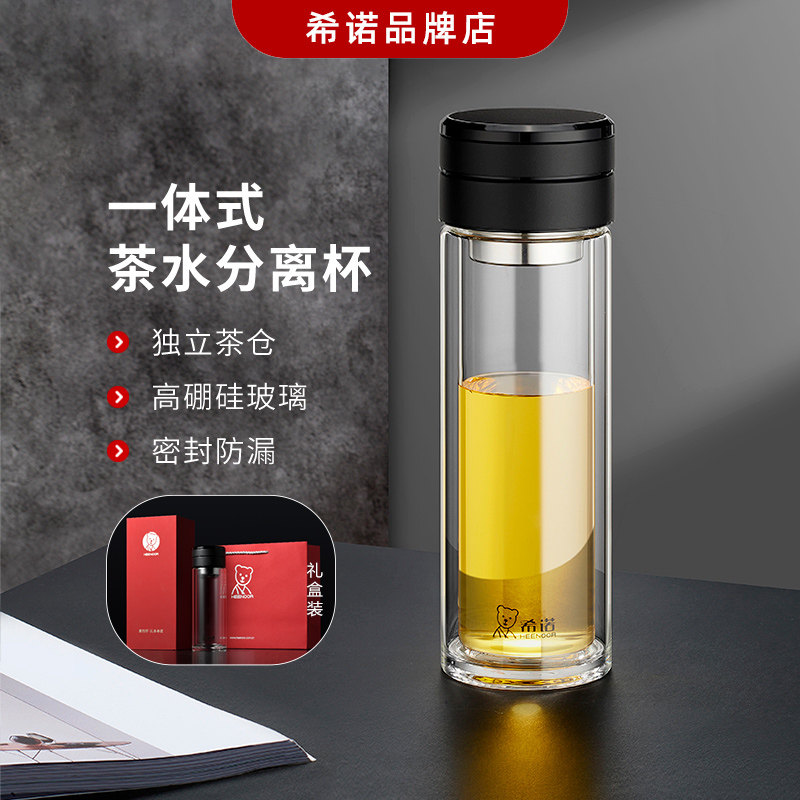 希诺茶水分离玻璃杯双层加厚隔热水杯男士专用大号商务礼品泡茶杯