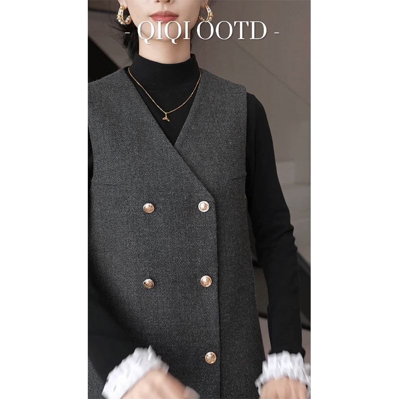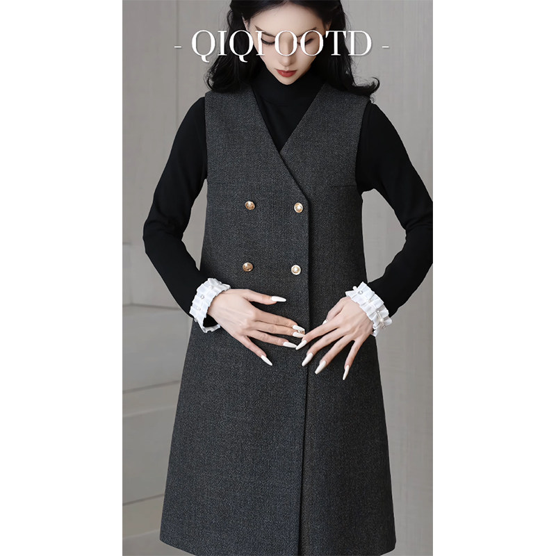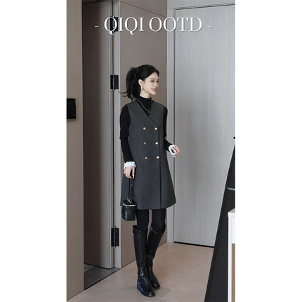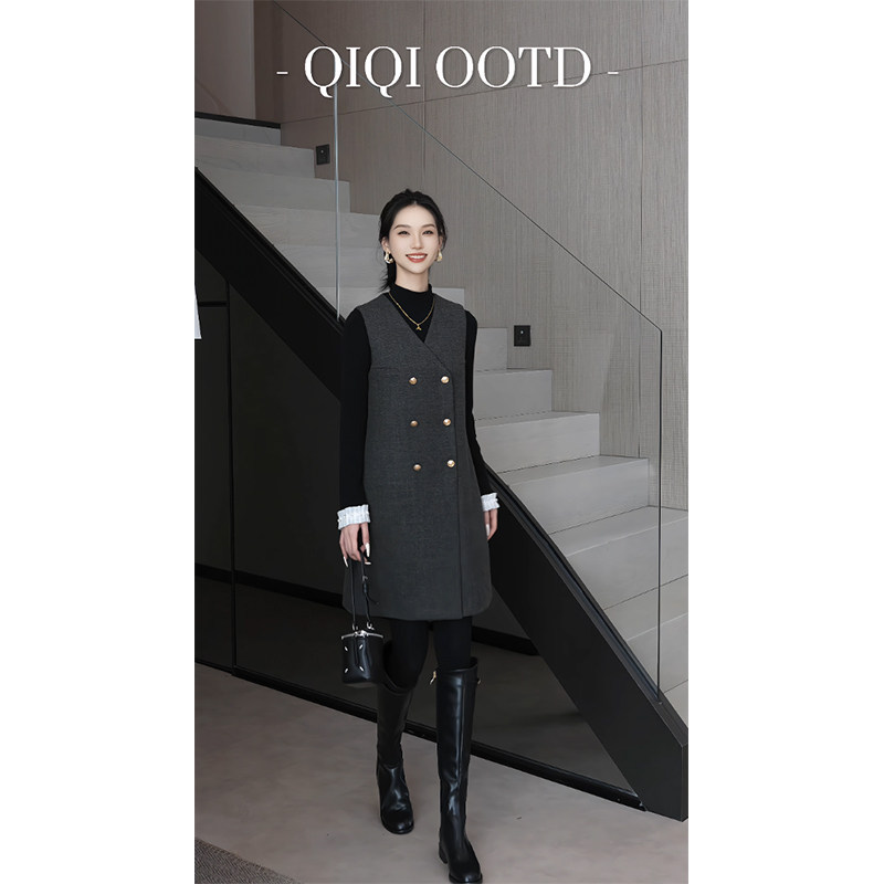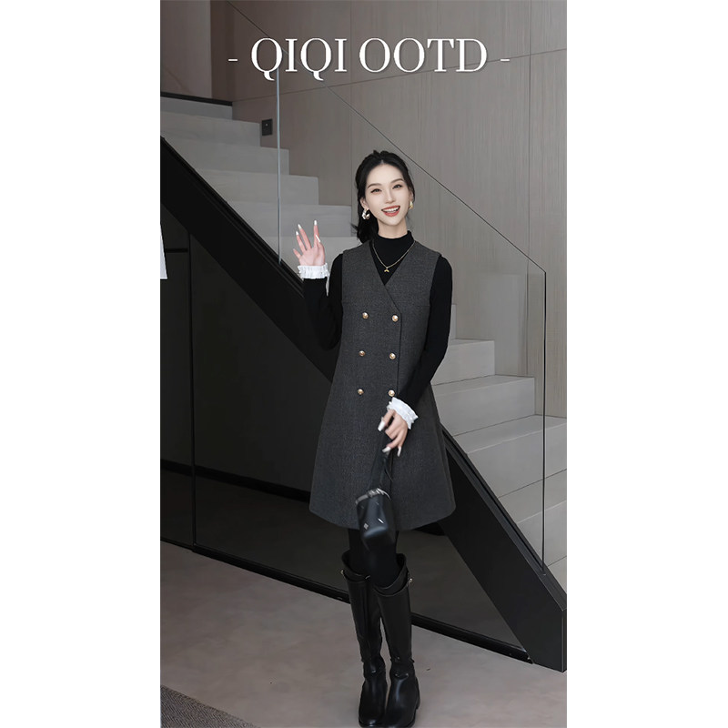 柒院家大码女高级感气质收腰V领背心连衣裙2025冬宽松显瘦中长裙