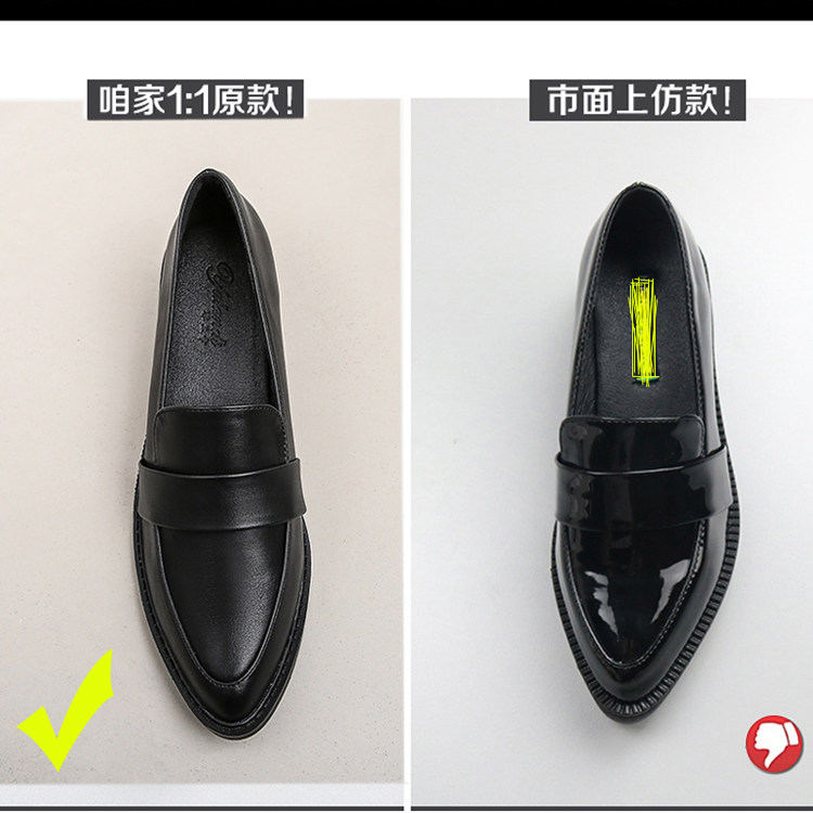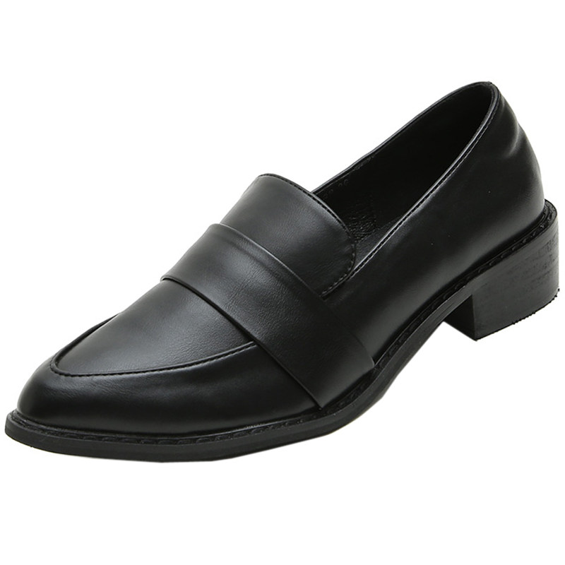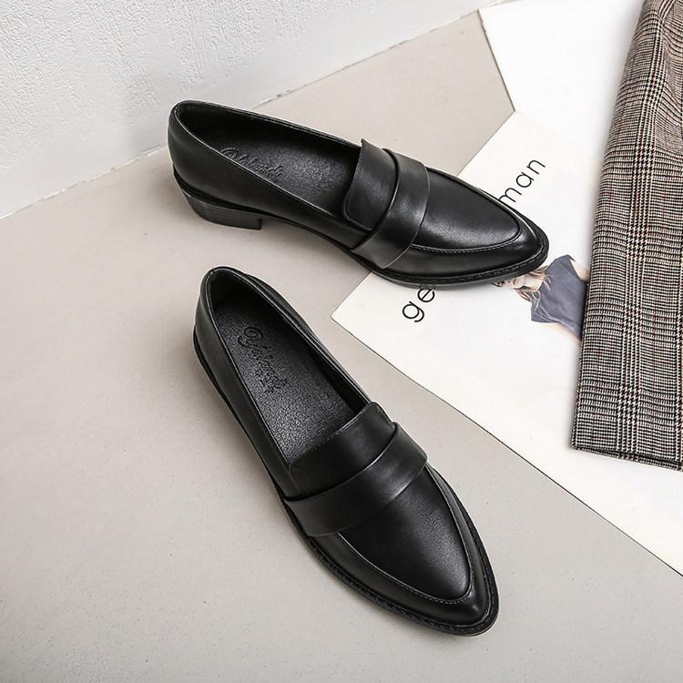尖头小皮鞋女春夏2025新款英伦风工作乐福鞋一脚蹬平底粗跟单鞋女