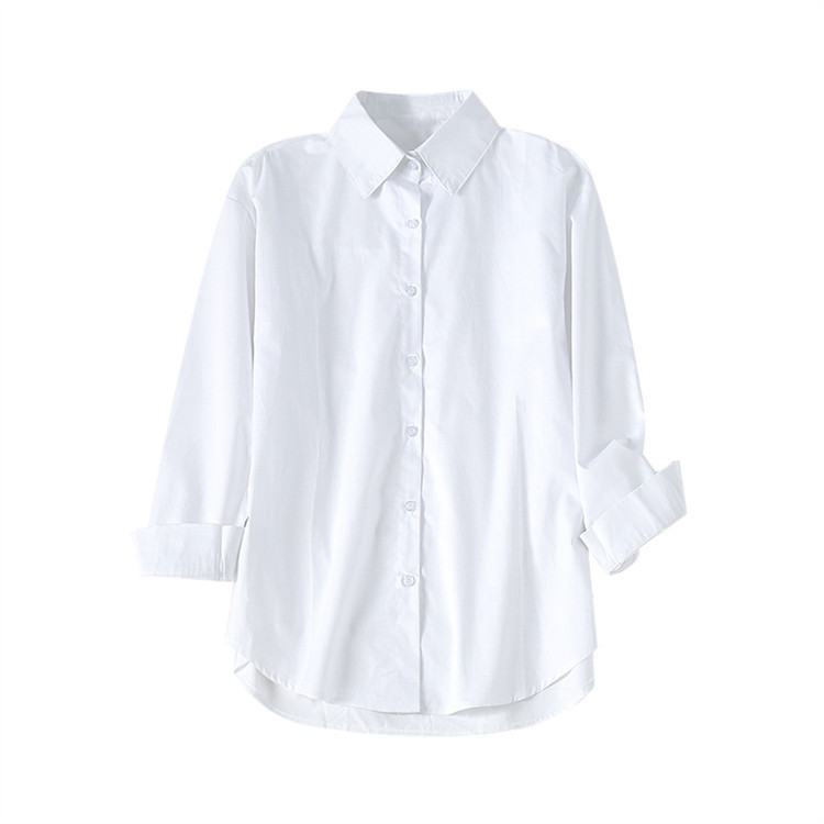 纯棉白衬衫女白色中长款宽松衬衣大码外搭外穿上衣新款休闲长袖