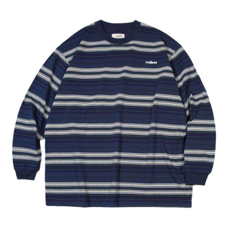 rodless春季宽松320g重磅刺绣条纹长袖T恤刺绣百搭国潮牌情侣上衣