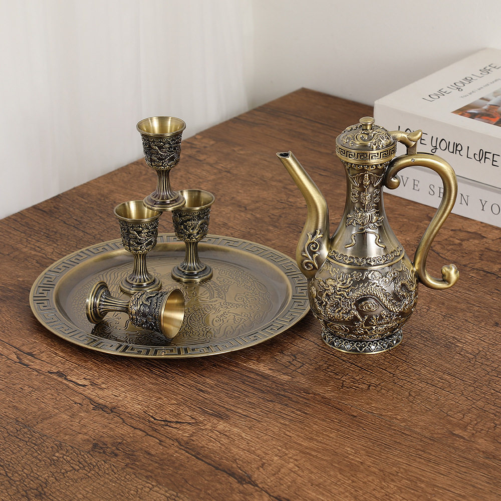 中式小号龙凤复古酒壶酒具套装百福装饰摆件影视道具景点纪念品