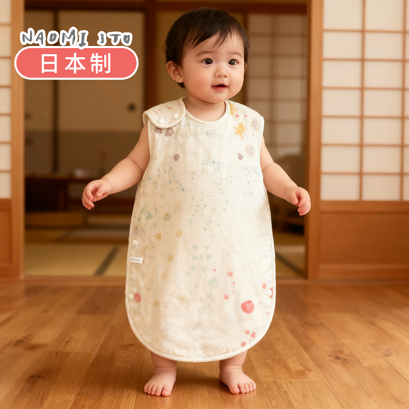 日本进口水彩六层纱布婴儿睡袋空调房宝宝防踢被子背心春秋冬季