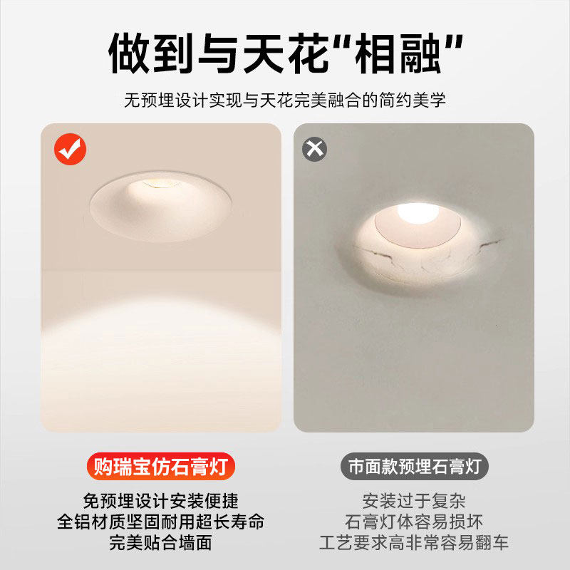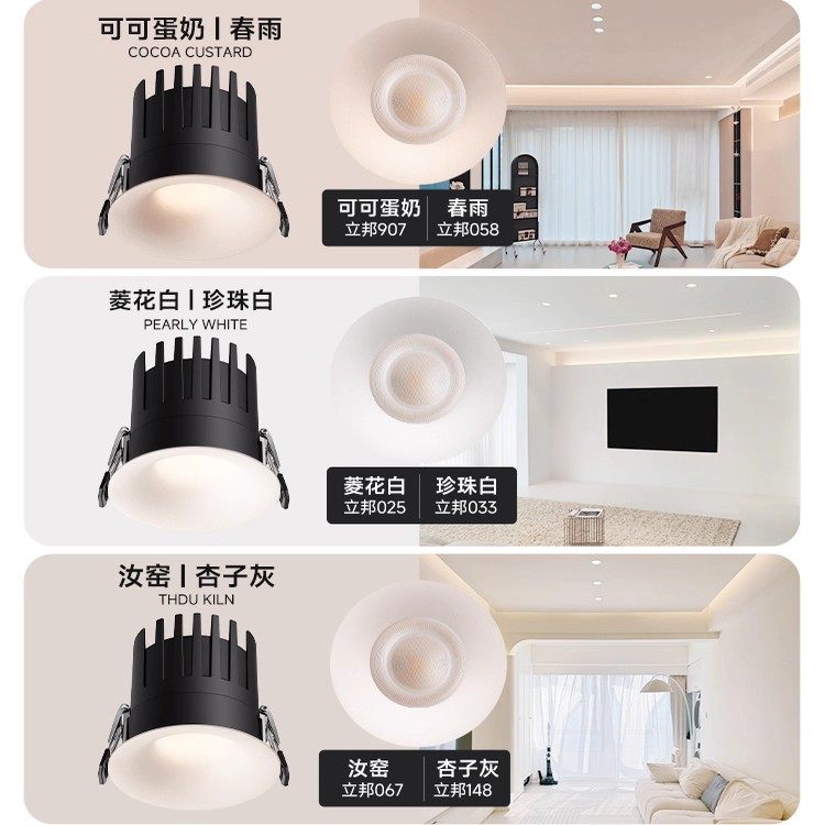 无边框筒灯可可蛋奶春雨家用智能中古奶油风防眩光射灯嵌入式75mm