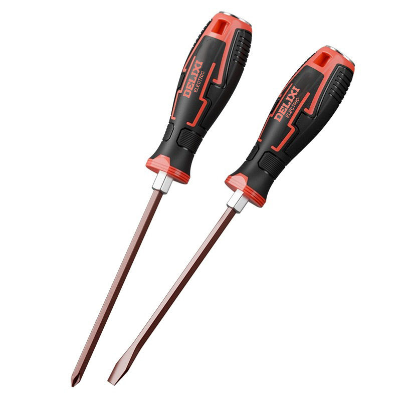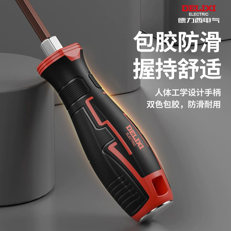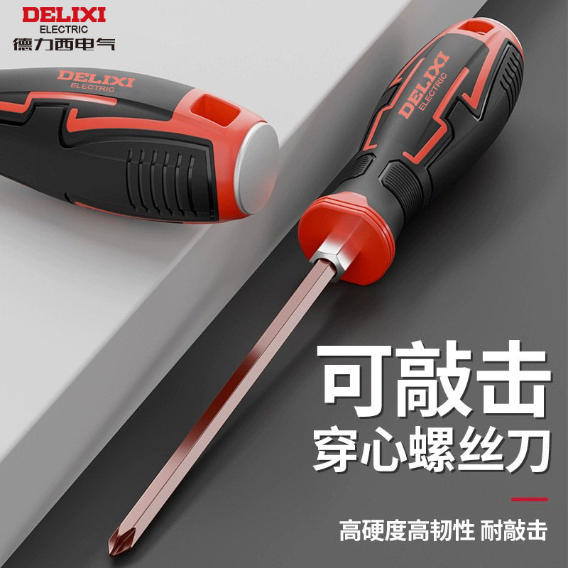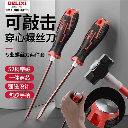 德力西一字穿心敲击螺丝刀平口改锥套装镙丝刀加长十字梅花起子
