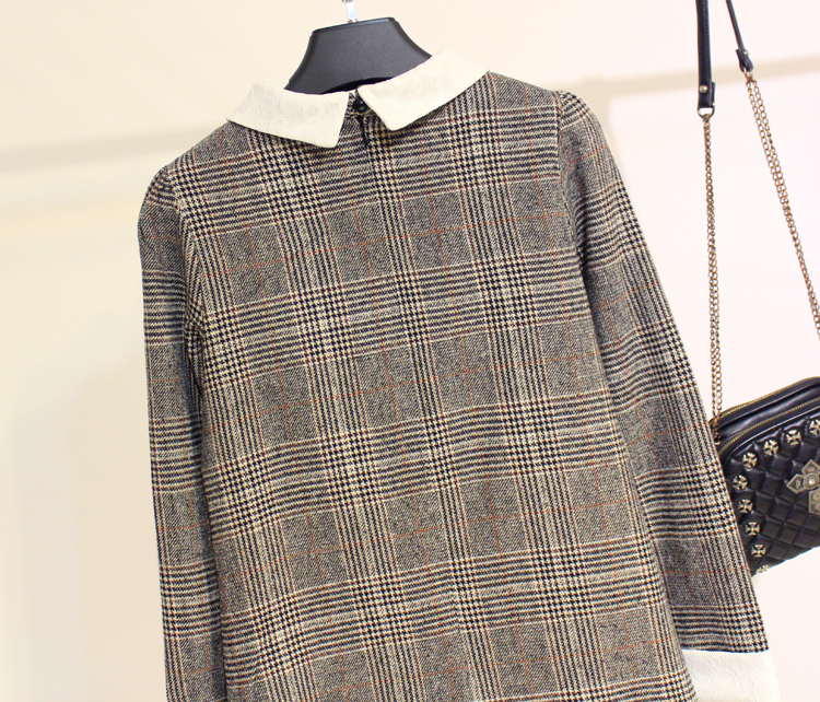 秋冬打底裙娃娃领大码长袖毛呢上衣秋冬季连衣裙中长款胖裙子 A字