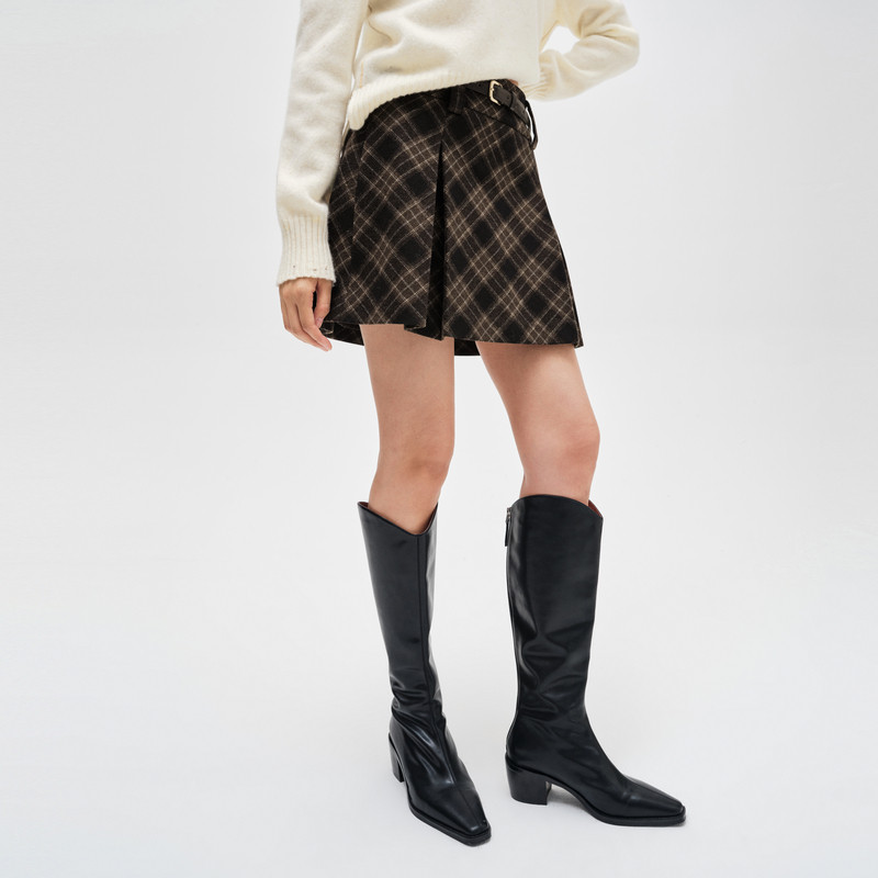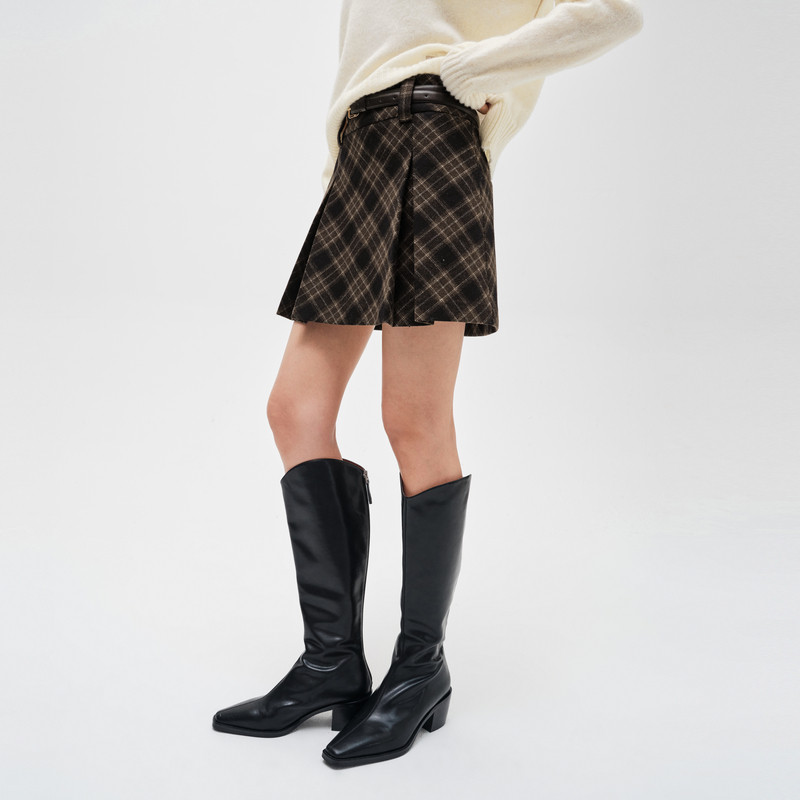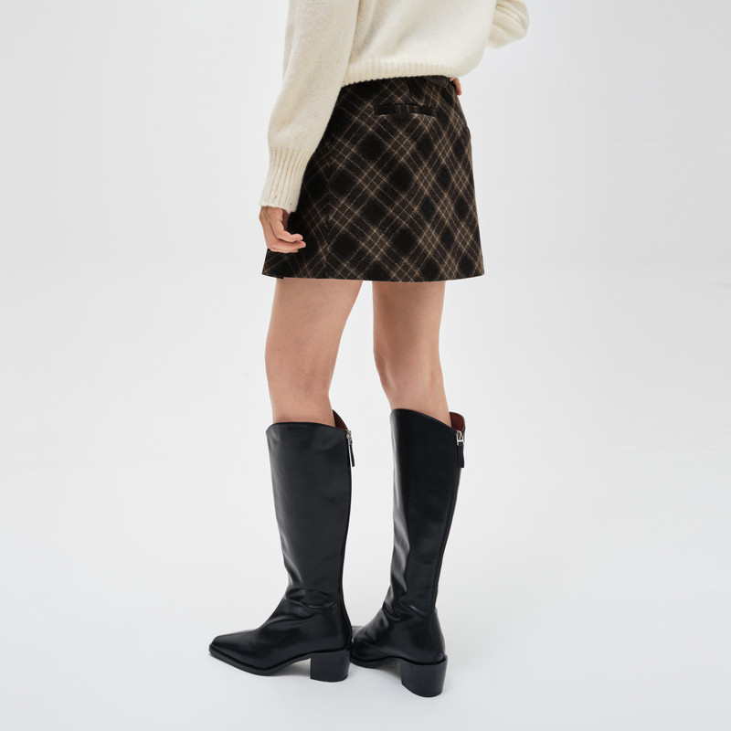indicia标记商场同款24年冬新款美式复古格纹a字裙短裙F2D4QZ776C