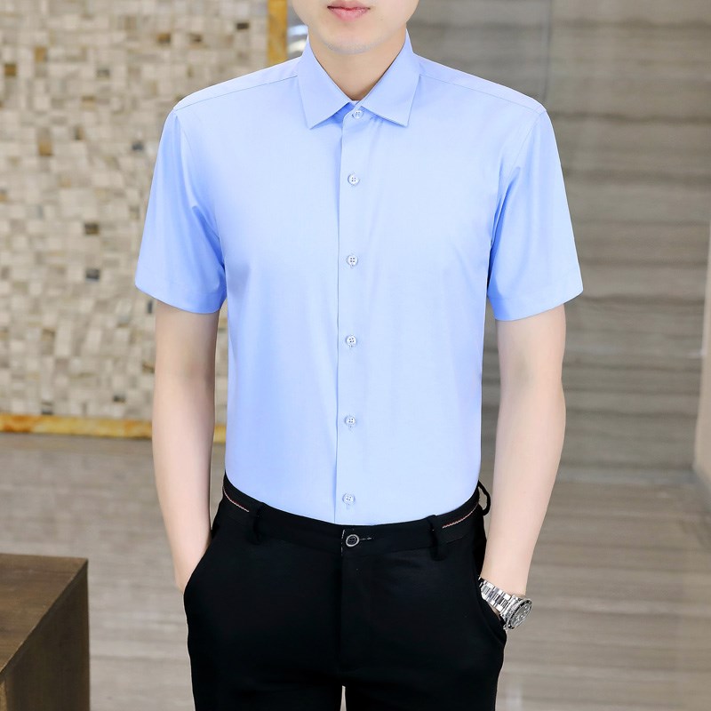 夏季竹纤维短袖衬衫男士修身商务职业装工作服短袖衬衣垂感白寸衫