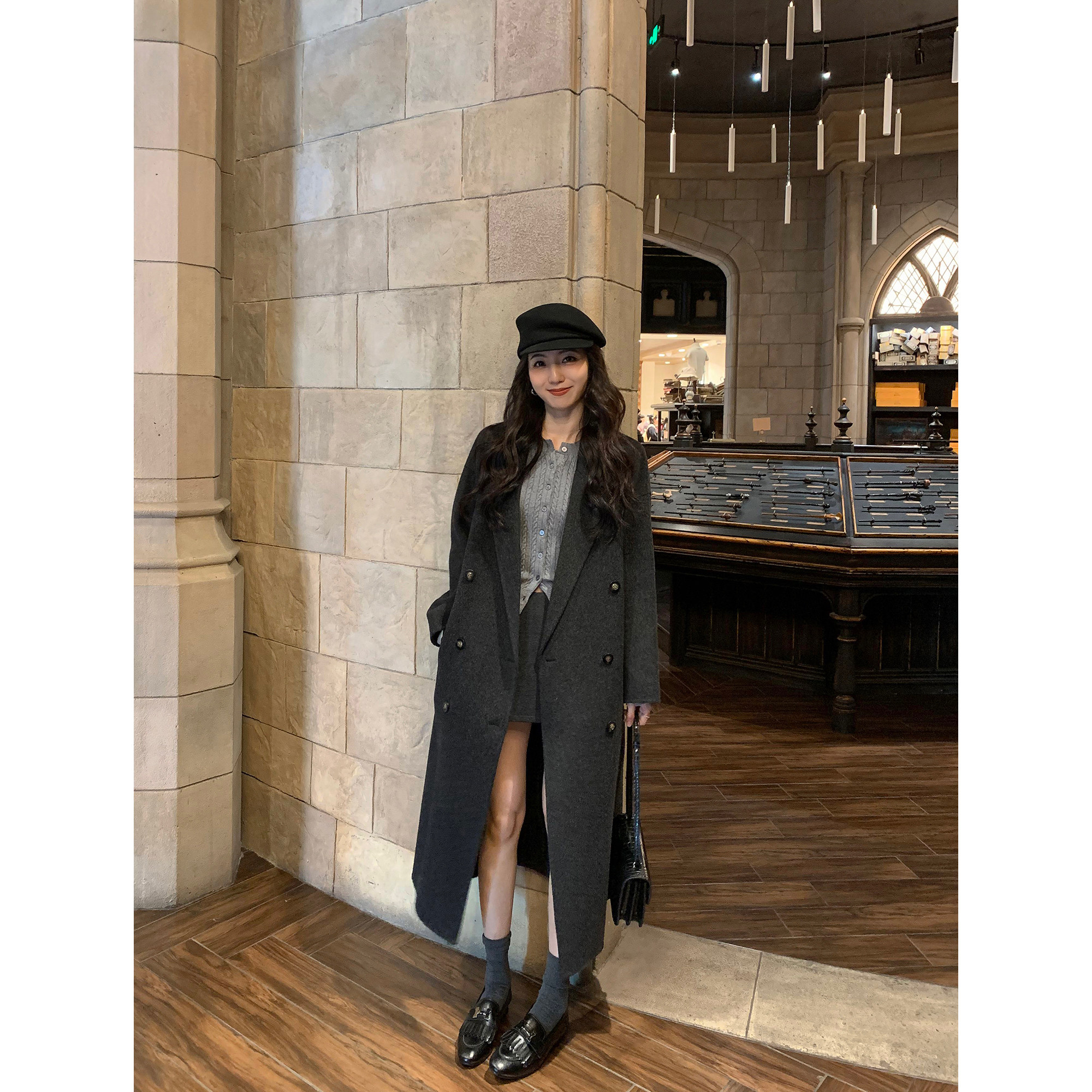 100%羊毛双面呢大衣中长款外套
