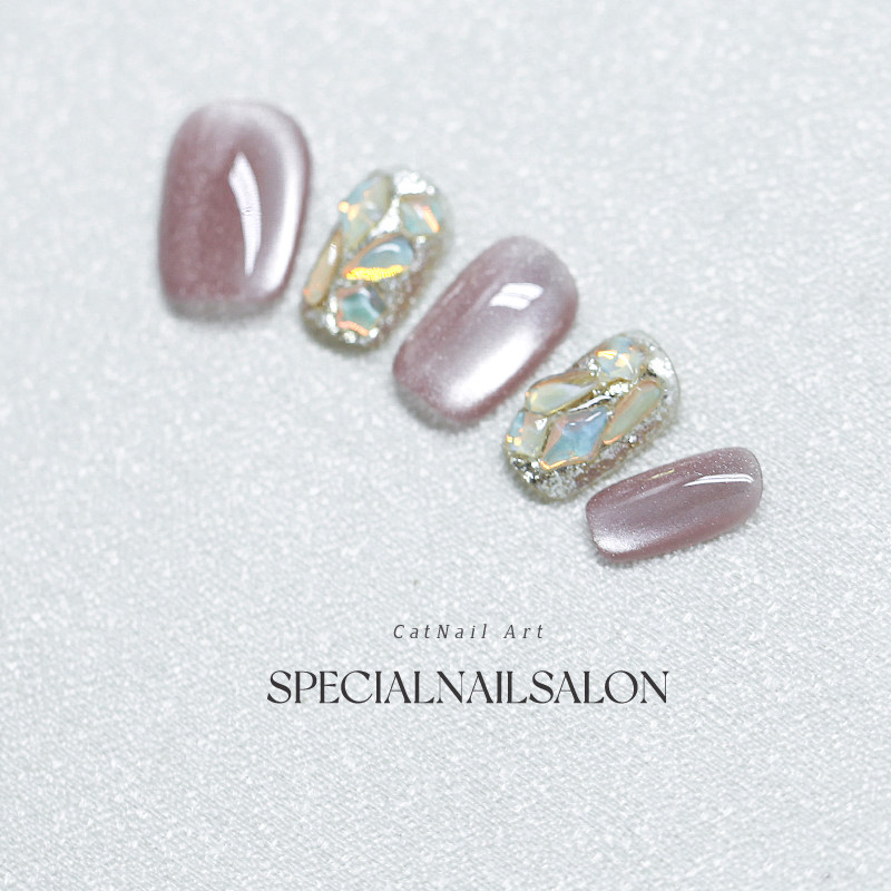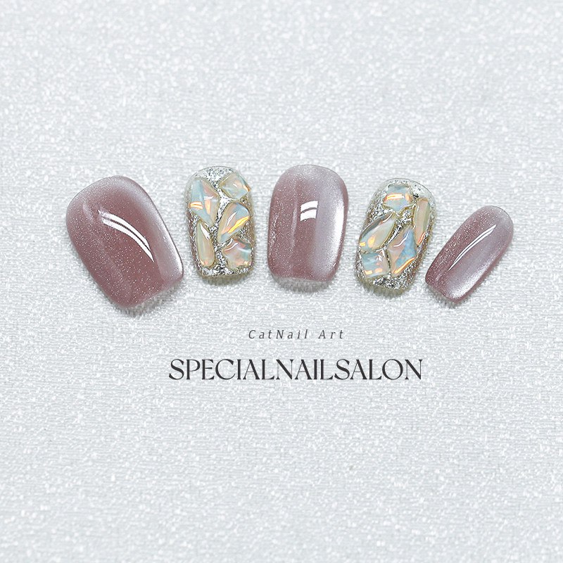 【日落金沙】粉色猫眼穿戴甲爆闪高级钻轻奢显白网红爆款美甲贴片