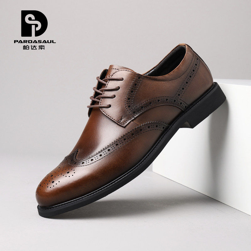 帕达索男士款商务正装皮鞋男春秋季布洛克内增高新郎结婚鞋250941