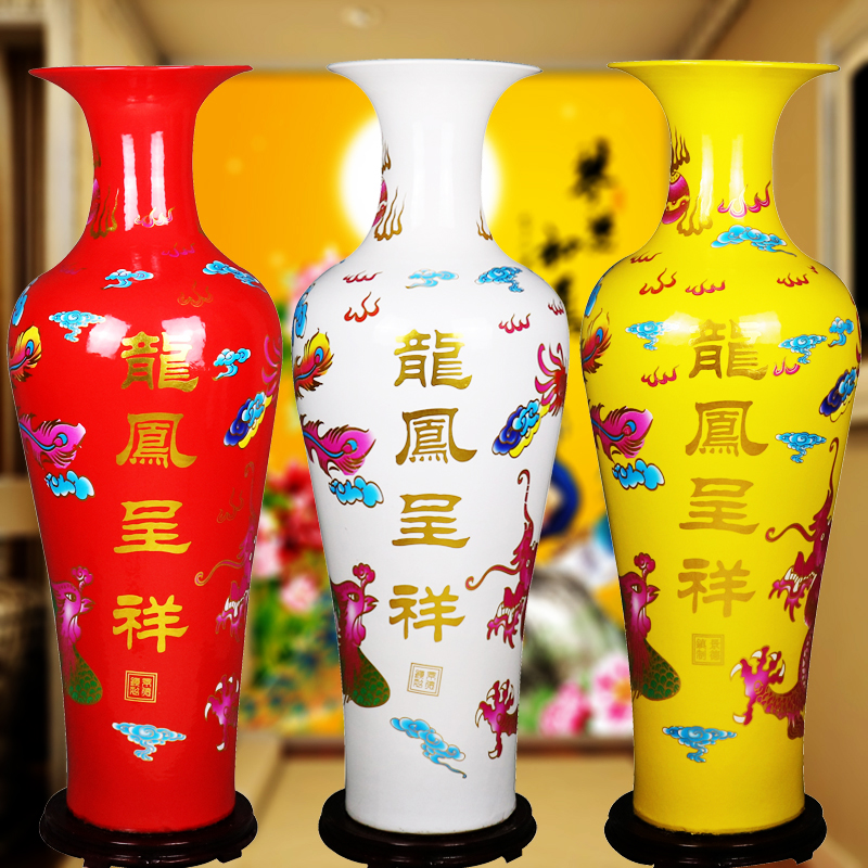 景德镇陶瓷器龙凤呈祥落地大花瓶中国红新房客厅花瓶大号插花摆件