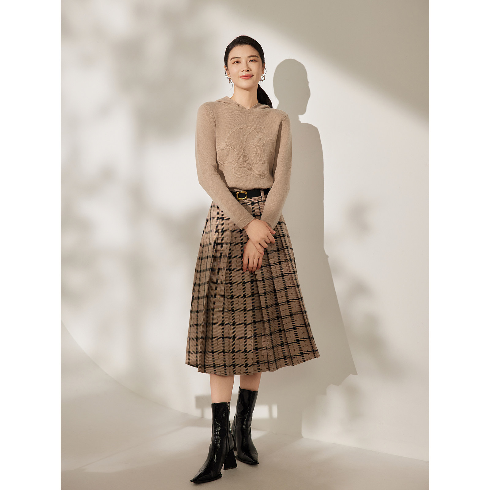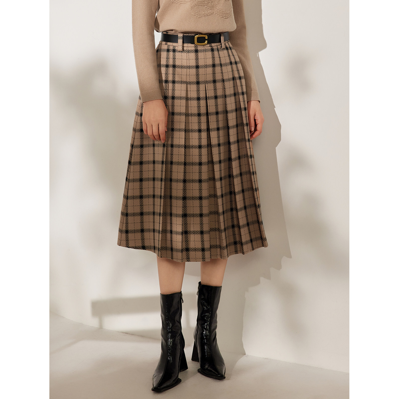 【复古摩登】BBLLUUEE/粉蓝衣橱商场同款2025秋冬色织格纹半身裙