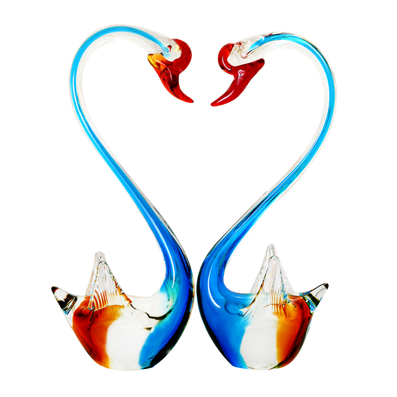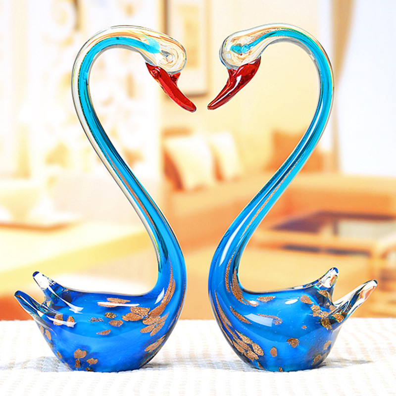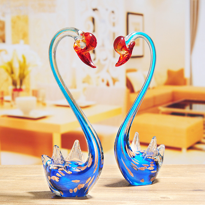 欧式轻奢琉璃天鹅摆件新房样板间客厅装饰结婚礼物玻璃动物工艺品