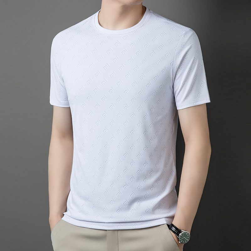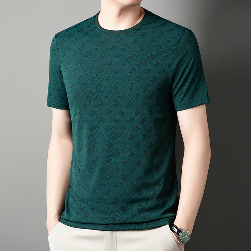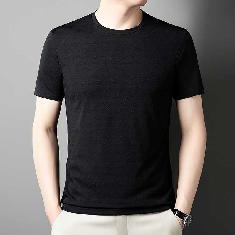 皮尔卡丹夏季高档休闲冰丝短袖t恤男士中青年圆领半袖体恤衫男装