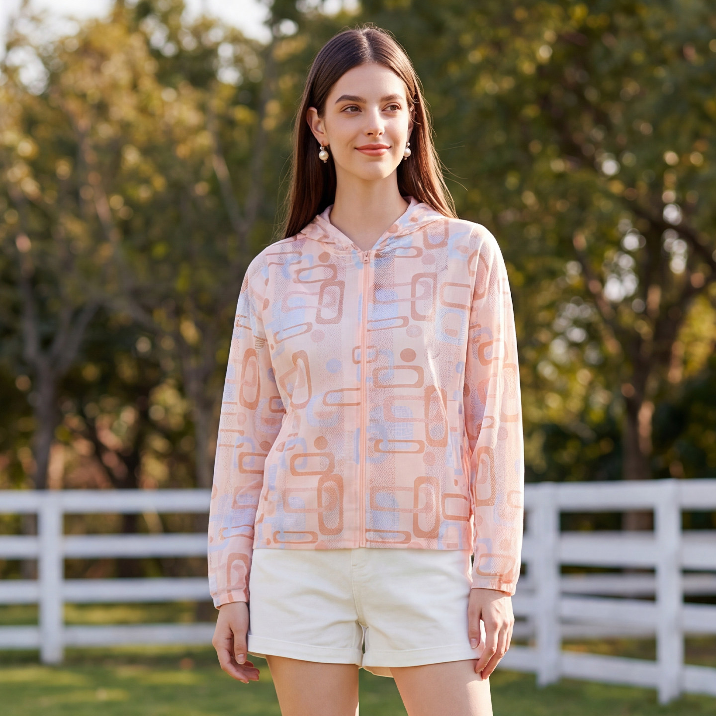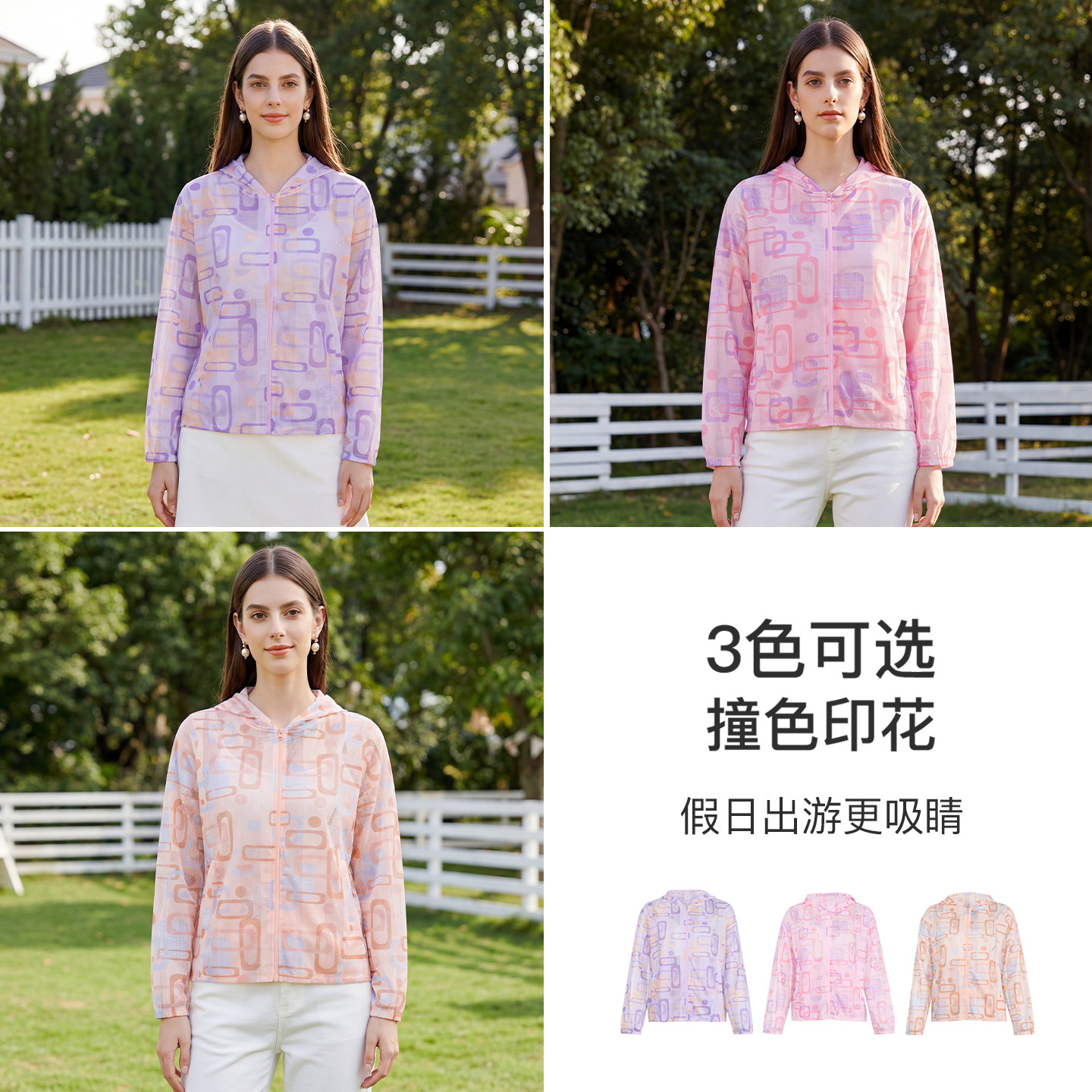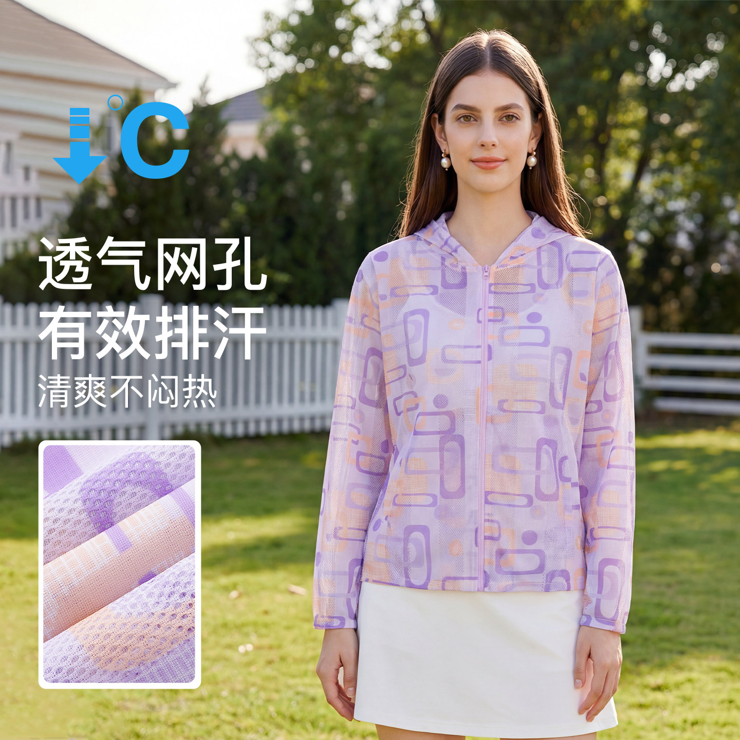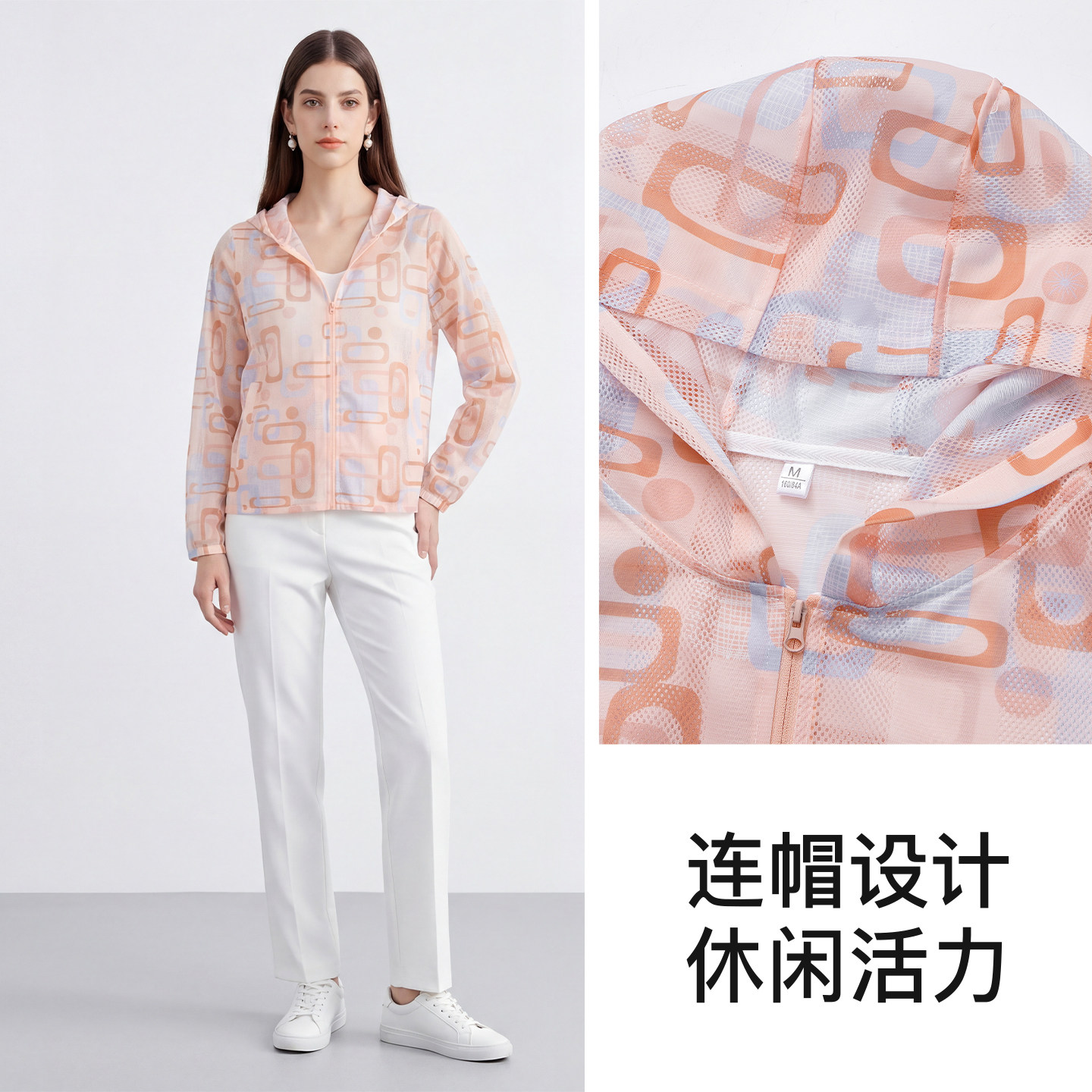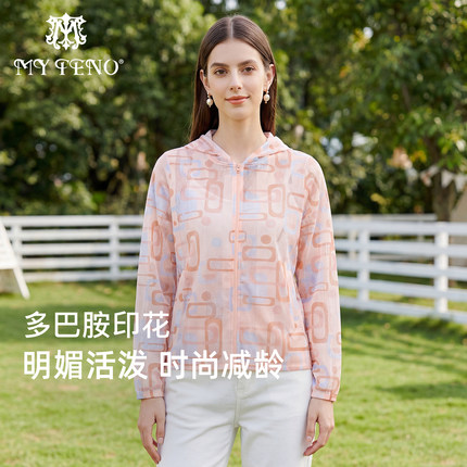 马天奴印花网孔连帽拉链薄外套