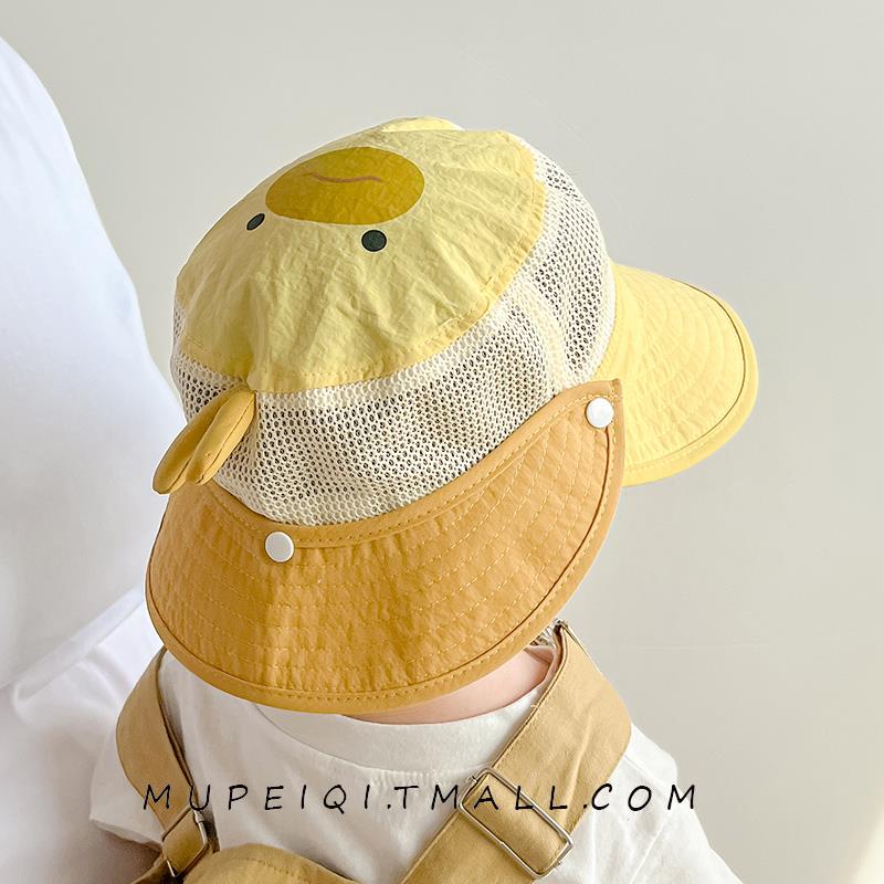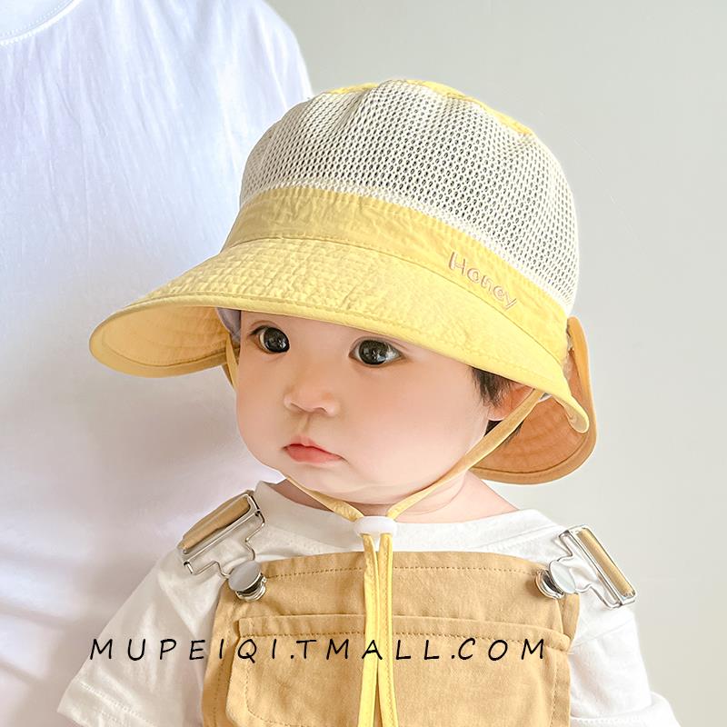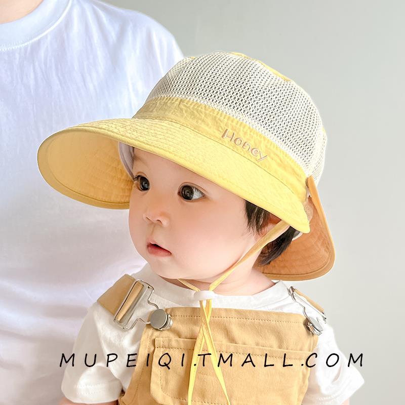 2025新款婴儿帽子夏季遮阳帽渔夫帽男童女宝宝网大檐可拆肩儿童透