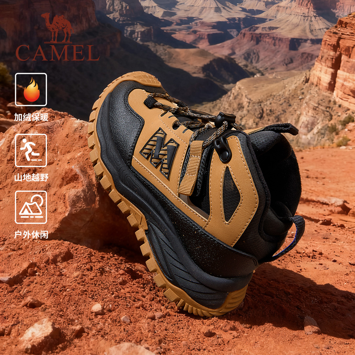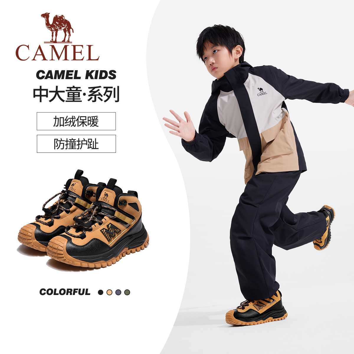 骆驼儿童户外登山鞋2025新款加绒保暖防滑徒步鞋中大童运动鞋男童