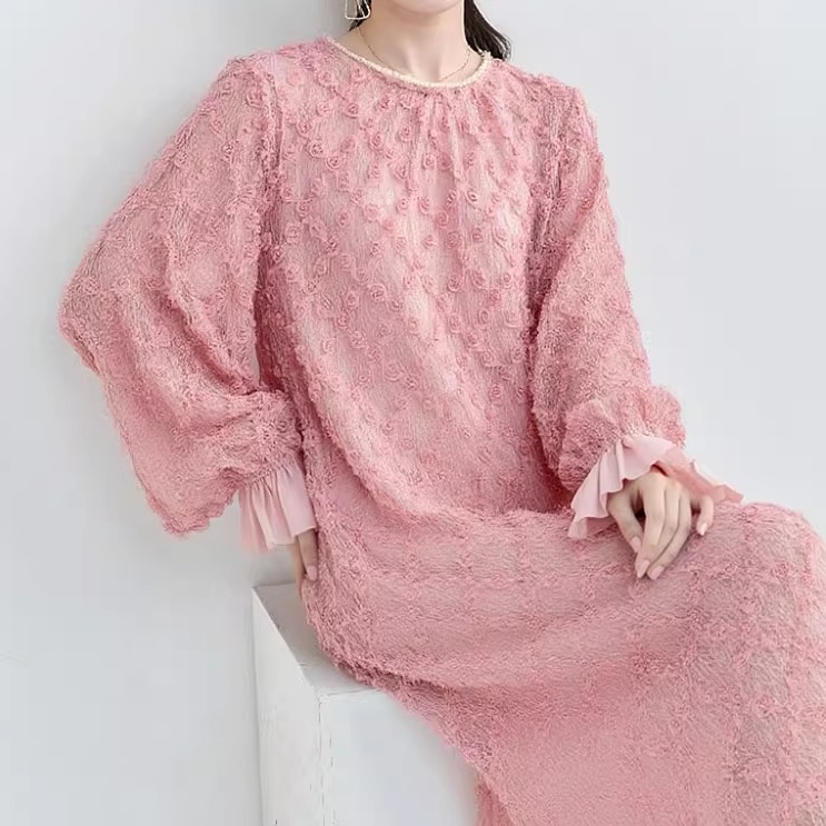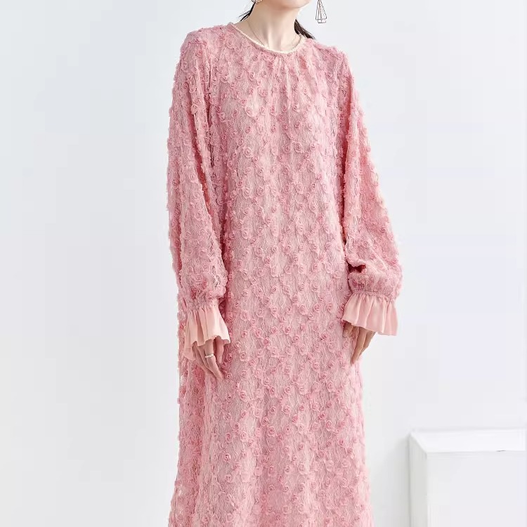 粉色连衣裙女气质大码礼服裙子秋季新款宽松女装裙女款订婚裙胖mm