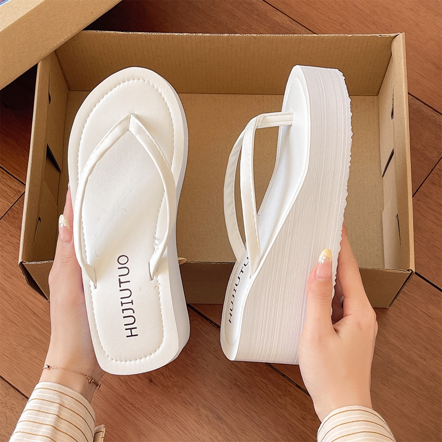 高跟厚底人字拖鞋女夏季时尚外穿2025新款防滑沙滩坡跟夹脚凉拖鞋