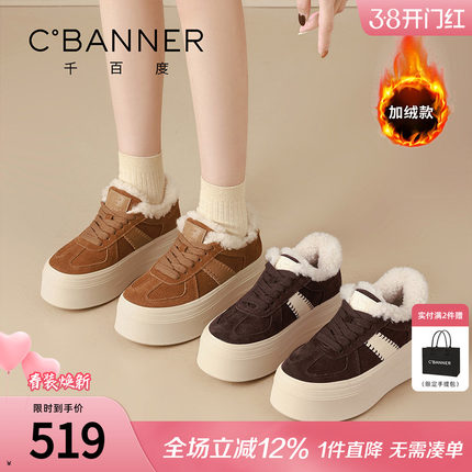 商场同款 千百度厚底德训鞋女冬季2025棉鞋运动休闲板鞋RA254002