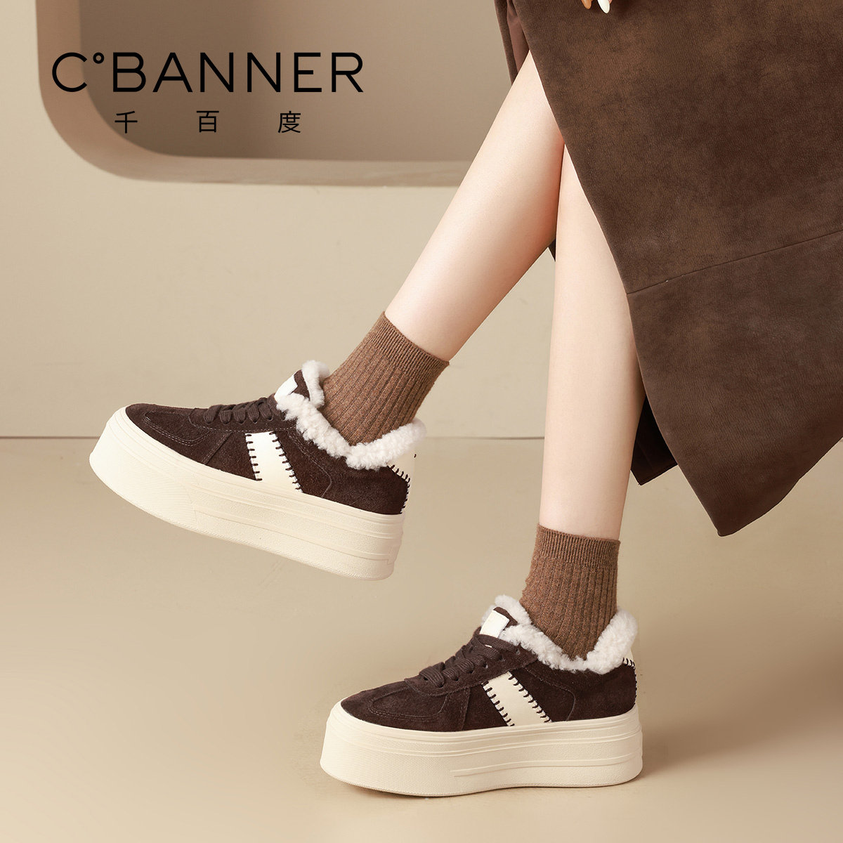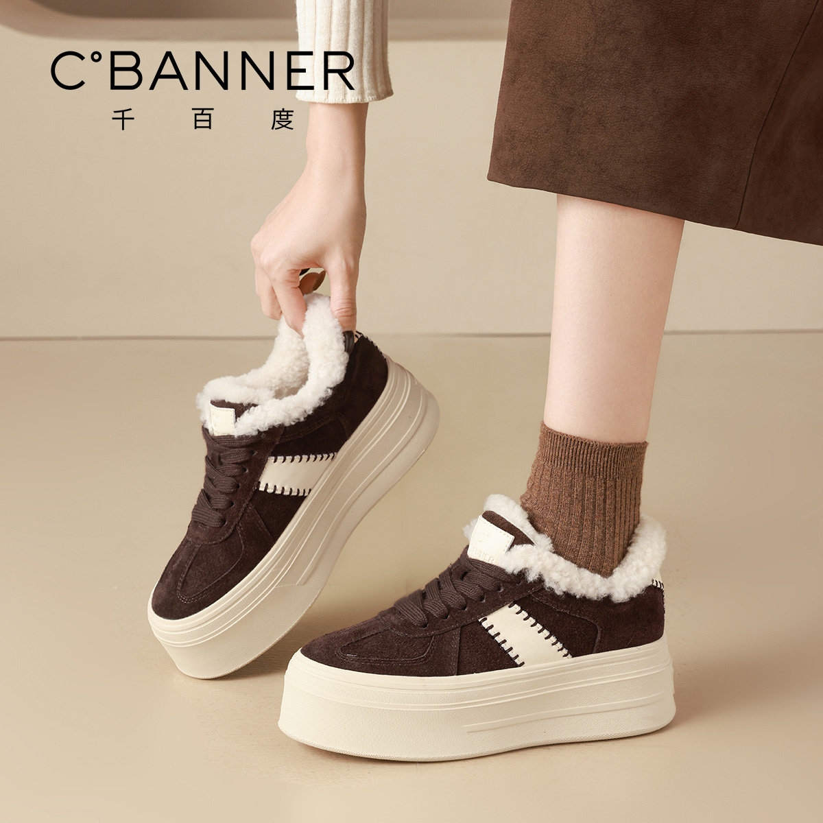 千百度厚底德训鞋冬季保暖