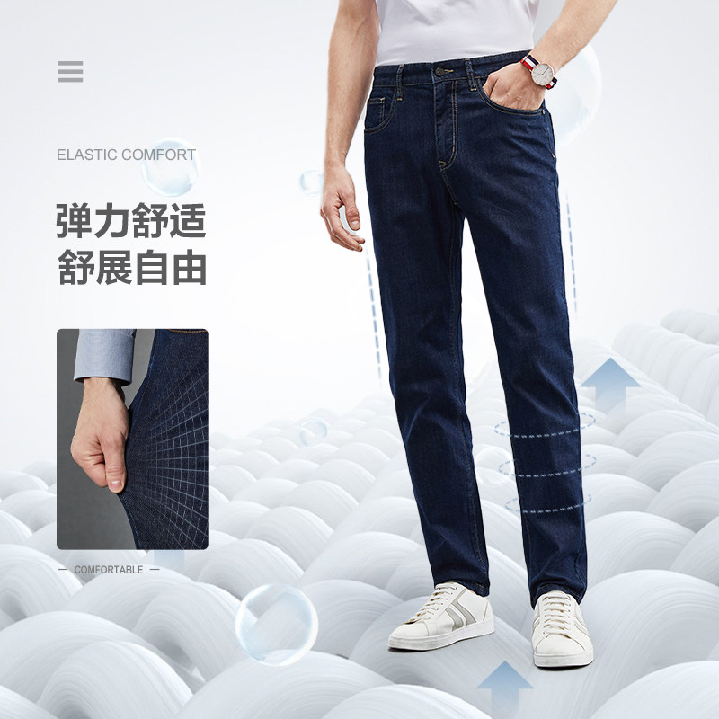 【含桑蚕丝】柒牌男装清仓水洗牛仔裤男夏季商务休闲合体直筒长裤