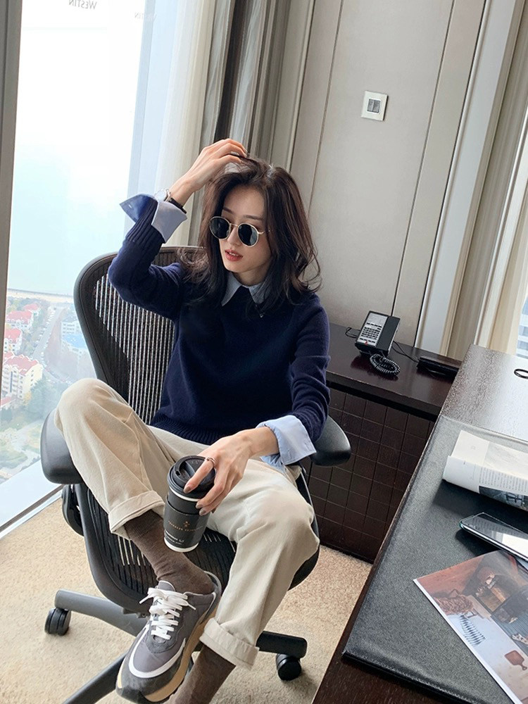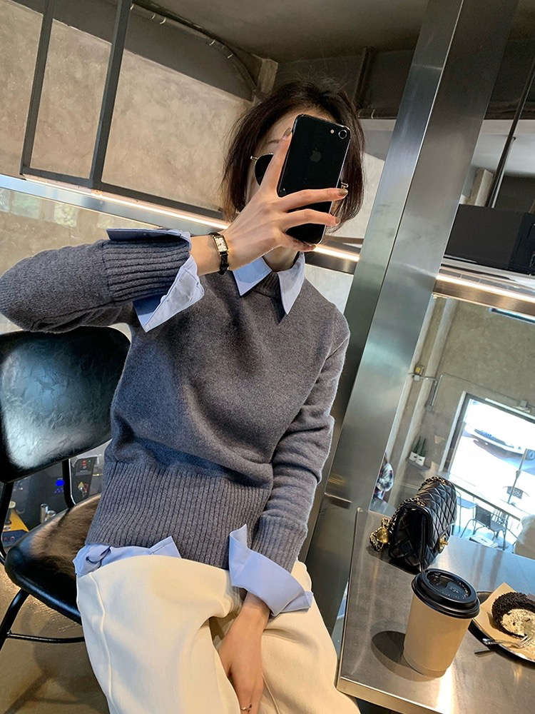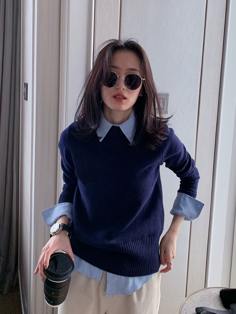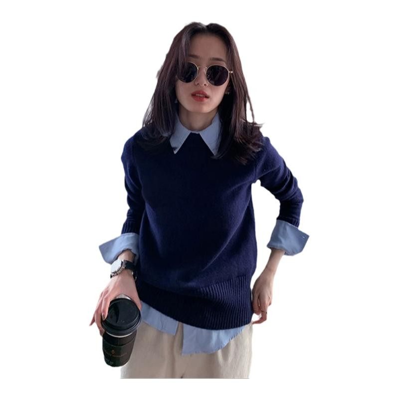 2025秋冬新款女装拼接假两件针织衫短款毛衣法式高级感Polo领上衣